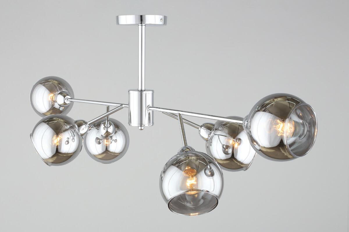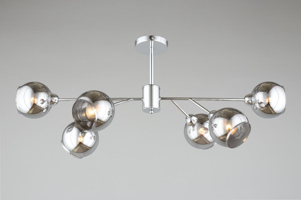 Потолочная люстра Omnilux Ellera OML-94107-06 от Китайского бренда из коллекции Ellera будет удачно смотреться в гостиной в лофт стиле. Светильник выполнен из стекла с плафонами в форме дымчатого цвета.