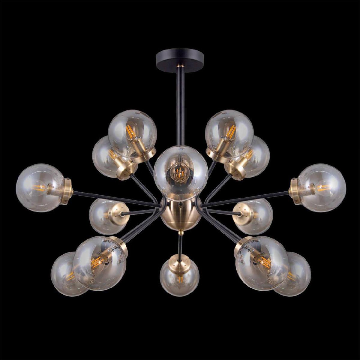 Производитель светильника рекомендует для устройства 15 энергосберегающих ламп с цоколем E14 и мощностью 20 W, что позволит осветить помещение площадью 16,7 кв.м. Габариты изделия: высота – 700 мм, диаметр – 860 мм.