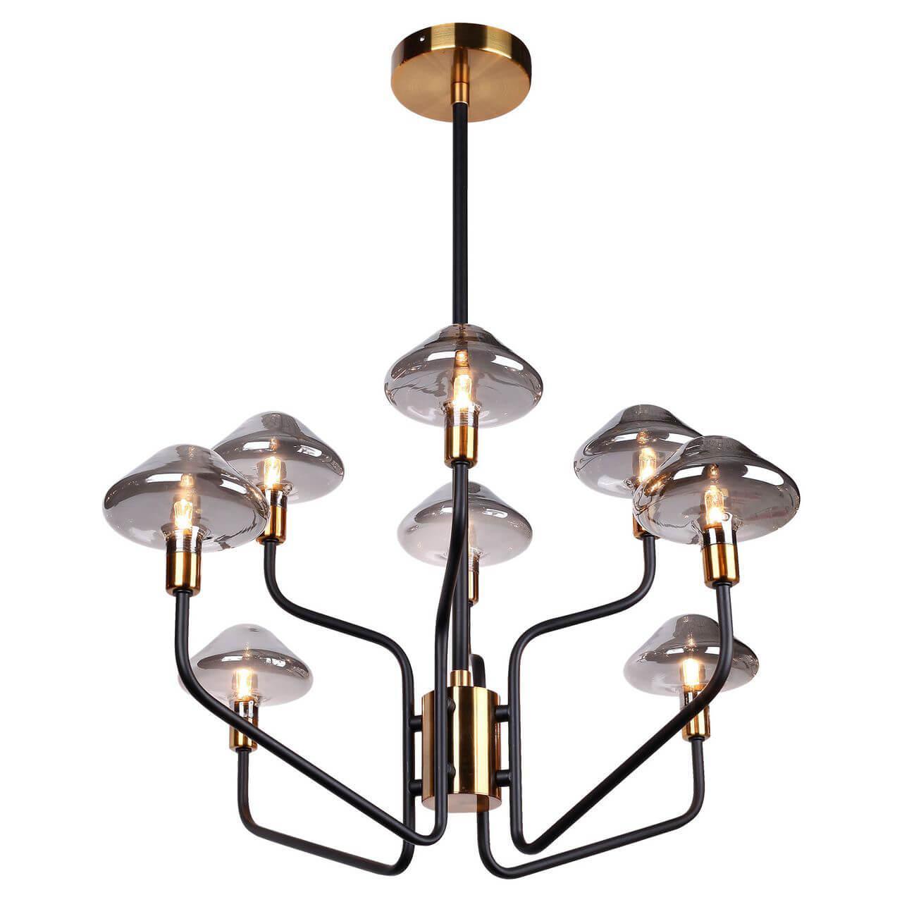 Производитель светильника рекомендует для устройства 8 галогеновых ламп с цоколем G9 и мощностью 25 W, что позволит осветить помещение площадью 11,1 кв.м. Габариты изделия: высота – 370 мм, диаметр – 630 мм.