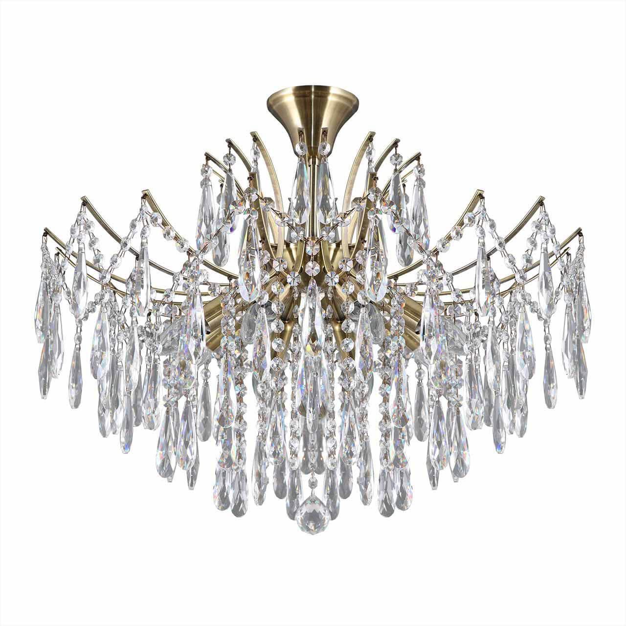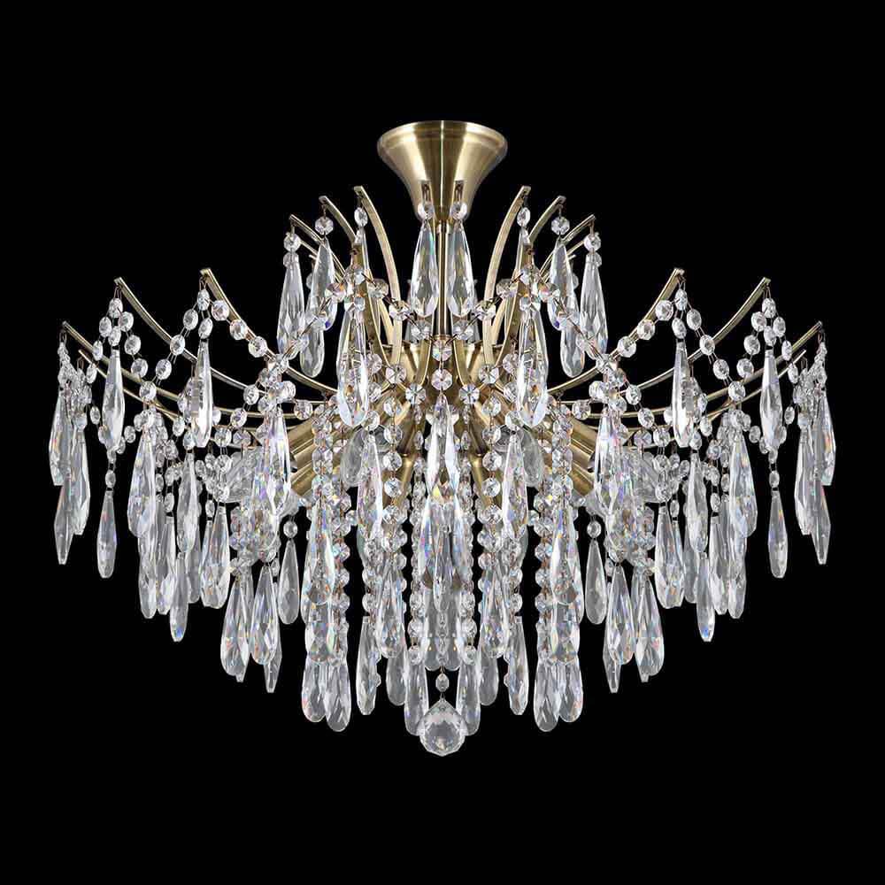 Производитель светильника рекомендует для устройства 8 ламп накаливания с цоколем E14 и мощностью 40 W, что позволит осветить помещение площадью 17,8 кв.м. Габариты изделия: высота – 650 мм, диаметр – 550 мм.