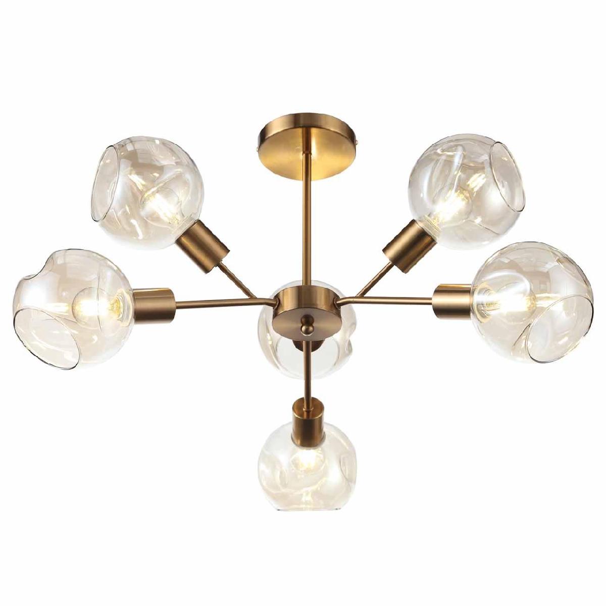 Потолочная люстра Evoluce Gentore SLE155302-06 от бренда Evoluce из коллекции Gentore будет удачно смотреться в гостиной в современном стиле. Светильник выполнен из стекла с плафонами в форме шара янтарного цвета.