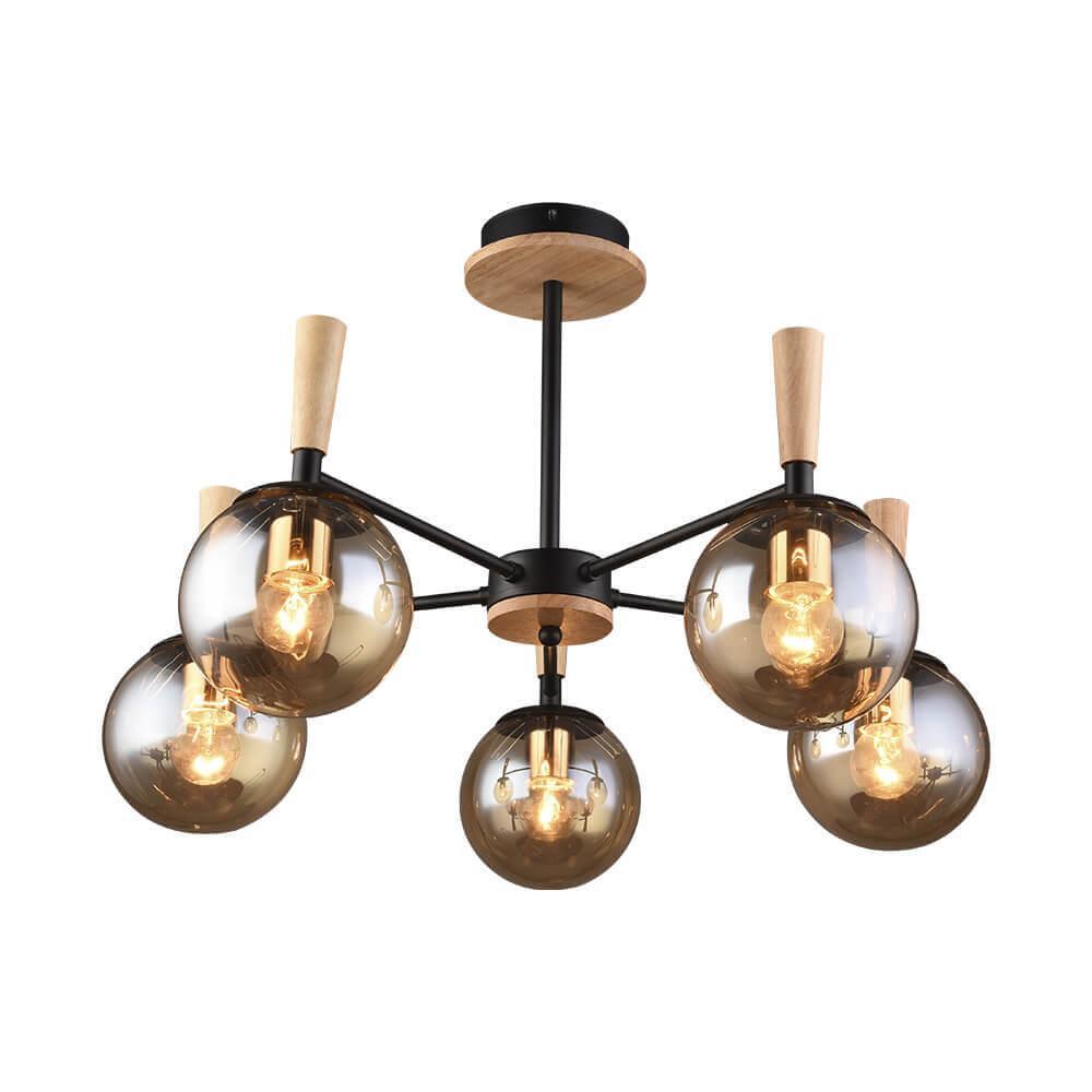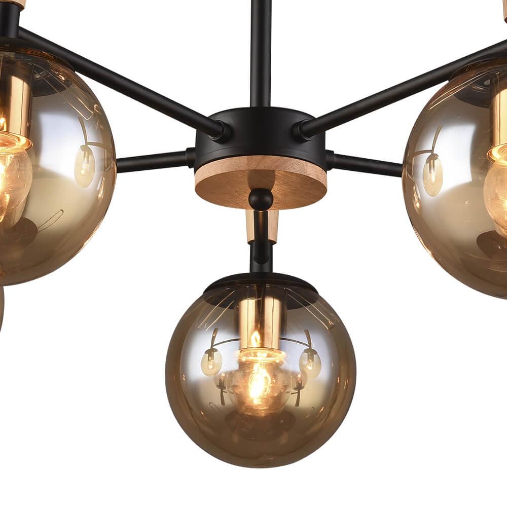Производитель светильника рекомендует для устройства 5 ламп накаливания с цоколем E27 и мощностью 60 W, что позволит осветить помещение площадью 16,7 кв.м. Габариты изделия: высота – 395 мм, диаметр – 605 мм.