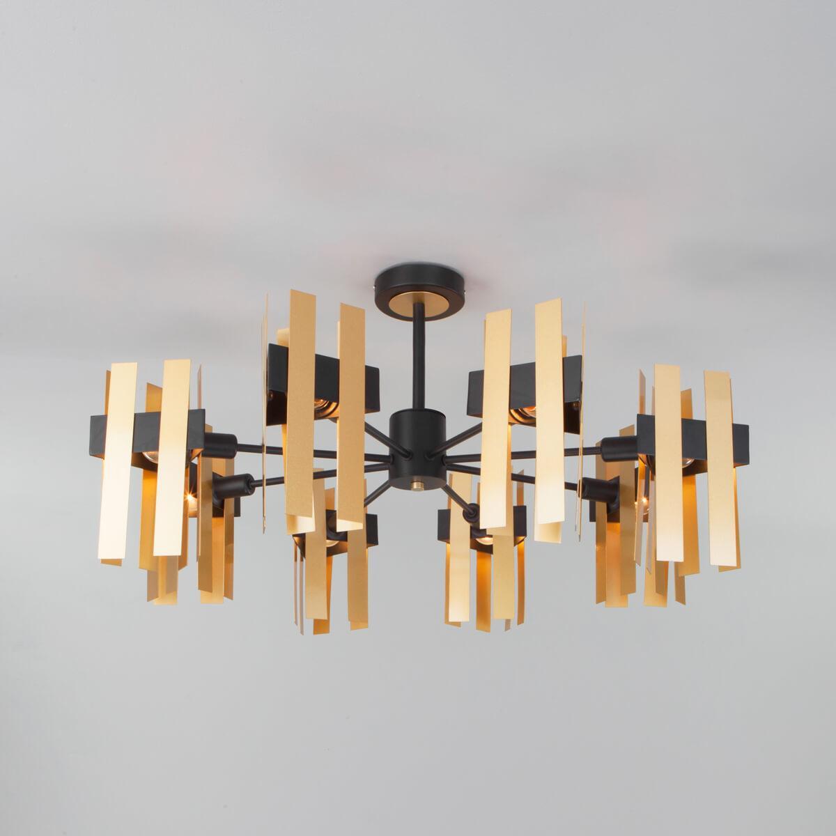 Потолочная люстра Eurosvet Spada 70116/8 черный от Китайского бренда из коллекции Spada будет удачно смотреться в гостиной в лофт стиле. Светильник выполнен из металла с плафонами в форме цвета латуни.