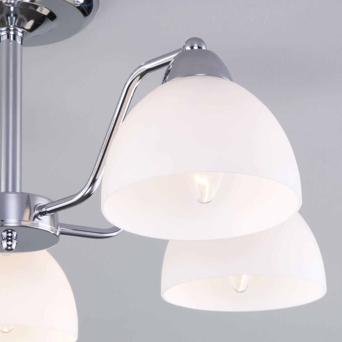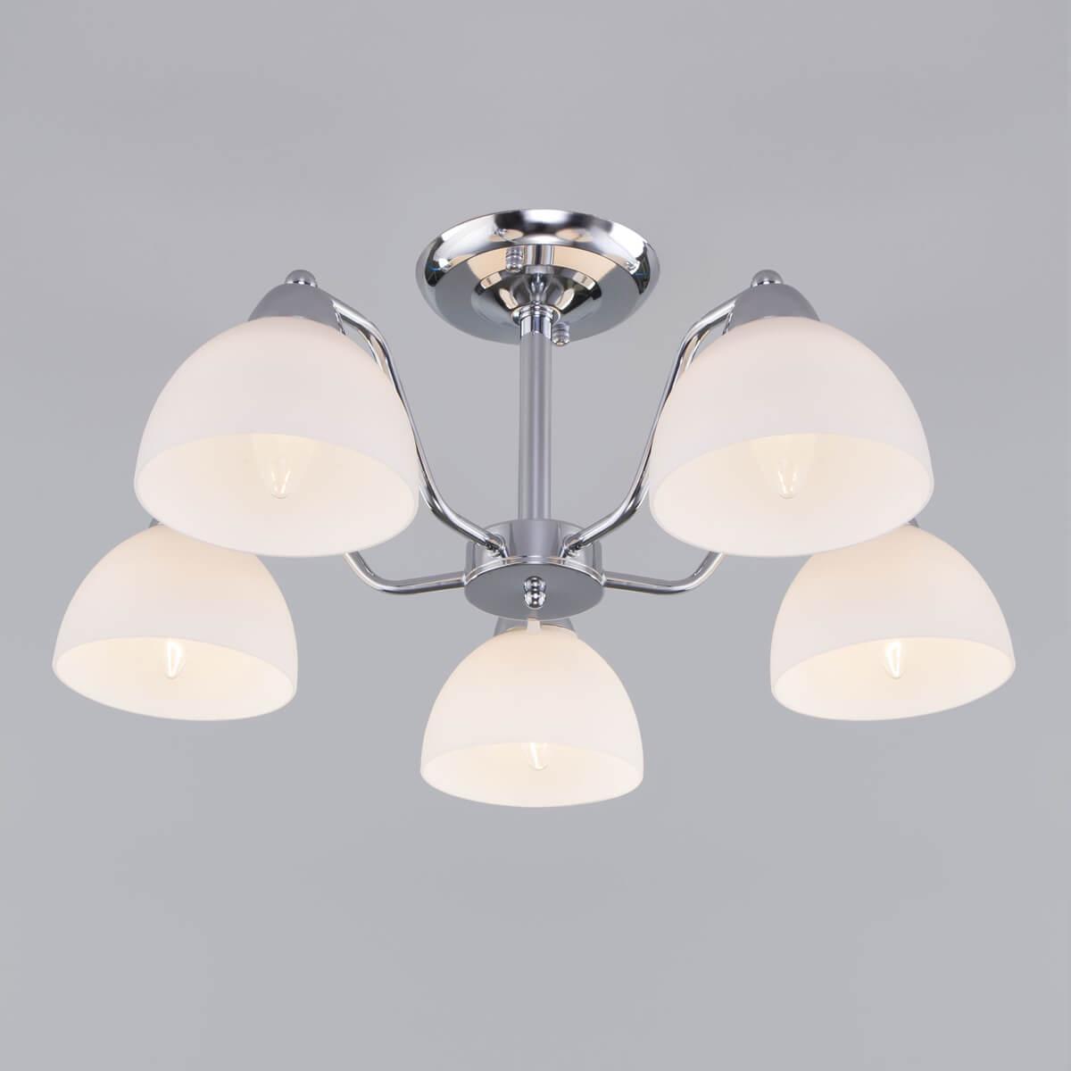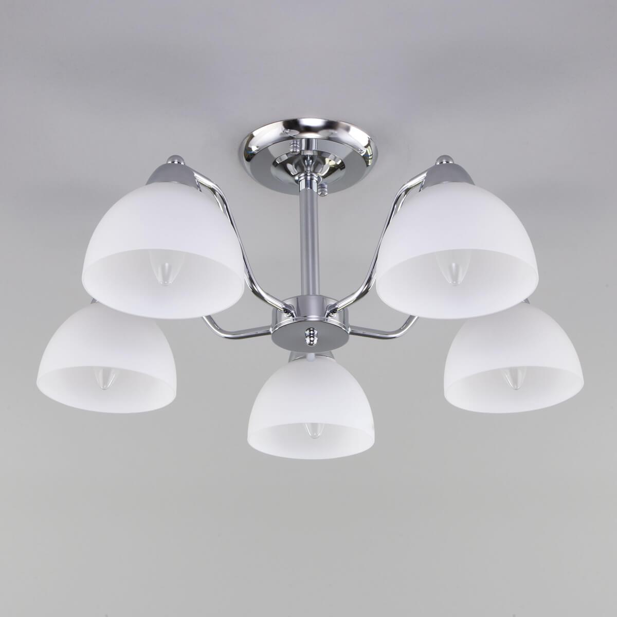 Потолочная люстра Eurosvet Carissa 30172/5 хром от Китайского бренда из коллекции Carissa будет удачно смотреться в кухне в стиле модерн. Светильник выполнен из стекла с плафонами в форме белого цвета.