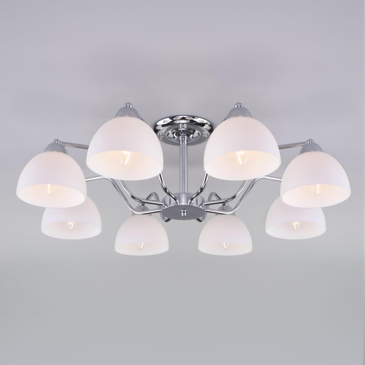 Потолочная люстра Eurosvet Carissa 30172/8 хром от Китайского бренда из коллекции Carissa будет удачно смотреться в спальни в стиле модерн. Светильник выполнен из стекла с плафонами в форме белого цвета.