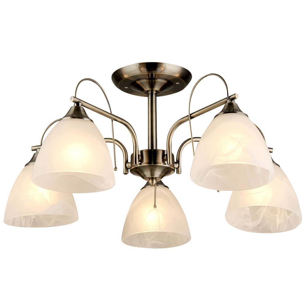 Производитель светильника рекомендует для устройства 5 ламп накаливания с цоколем E27 и мощностью 60 W, что позволит осветить помещение площадью 16,7 кв.м. Габариты изделия: высота – 230 мм, диаметр – 560 мм.