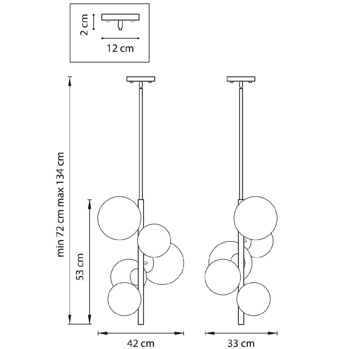 Производитель светильника рекомендует для устройства 5 ламп накаливания с цоколем E14 и мощностью 40 W, что позволит осветить помещение площадью 11 кв.м. Габариты изделия: высота – 530 мм, диаметр – мм.