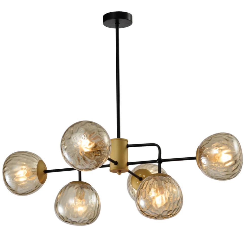 Производитель светильника рекомендует для устройства 6 ламп накаливания с цоколем E14 и мощностью 40 W, что позволит осветить помещение площадью 13.3 кв.м. Габариты изделия: высота – 700 мм, диаметр – 800 мм.