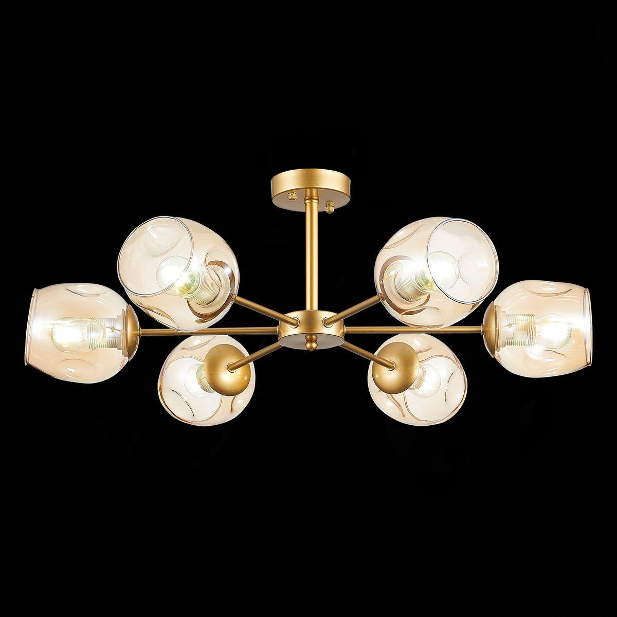 Потолочная люстра Evoluce Pallo SLE155412-06 от бренда из коллекции Pallo будет удачно смотреться в гостиной в стиле модерн. Светильник выполнен из стекла с плафонами в форме янтарного цвета.