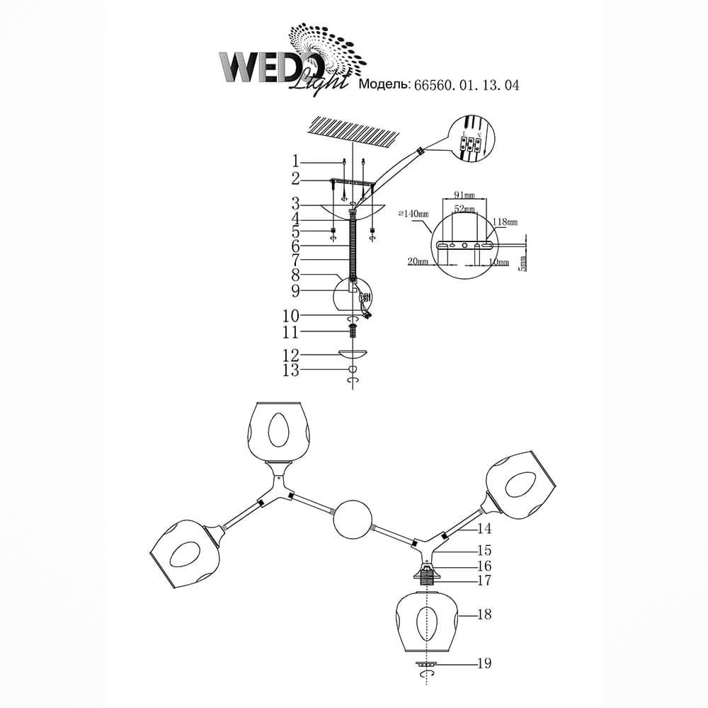 Производитель светильника рекомендует для устройства 4 лампы накаливания с цоколем E27 и мощностью 60 W, что позволит осветить помещение площадью 13,3 кв.м. Габариты изделия: высота – 320 мм, диаметр – мм.