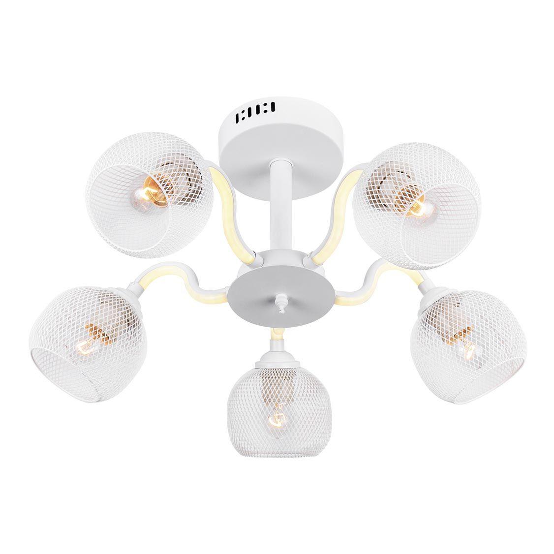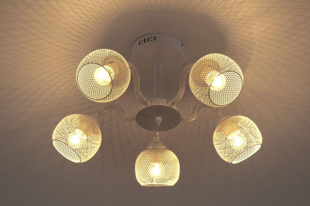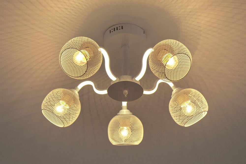 Производитель светильника рекомендует для устройства 5 ламп накаливания с цоколем E27 и мощностью 60 W, что позволит осветить помещение площадью 16,7 кв.м. Габариты изделия: высота – 300 мм, диаметр – 560 мм.