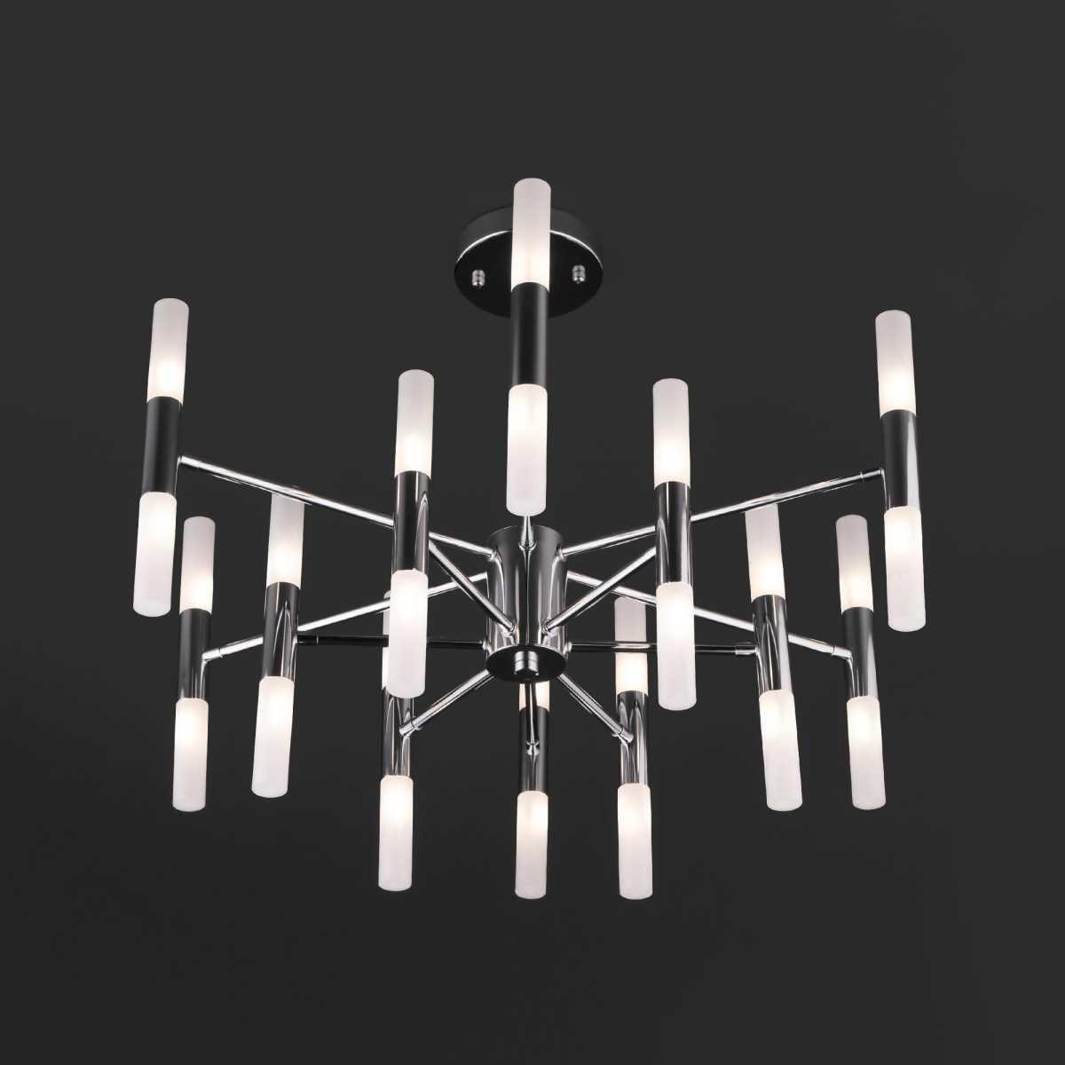 Производитель светильника рекомендует для устройства 24 светодиодных ламп с цоколем G4 и мощностью 3 W, что позволит осветить помещение площадью 36 кв.м. Габариты изделия: высота – 500 мм, диаметр – 600 мм.