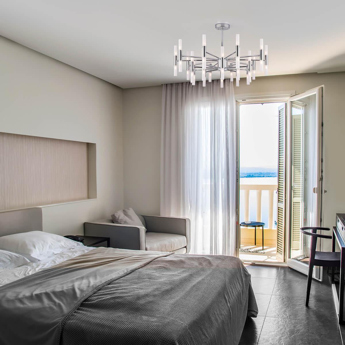 Производитель светильника рекомендует для устройства 40 светодиодных ламп с цоколем G4 и мощностью 3 W, что позволит осветить помещение площадью 60 кв.м. Габариты изделия: высота – 500 мм, диаметр – 800 мм.