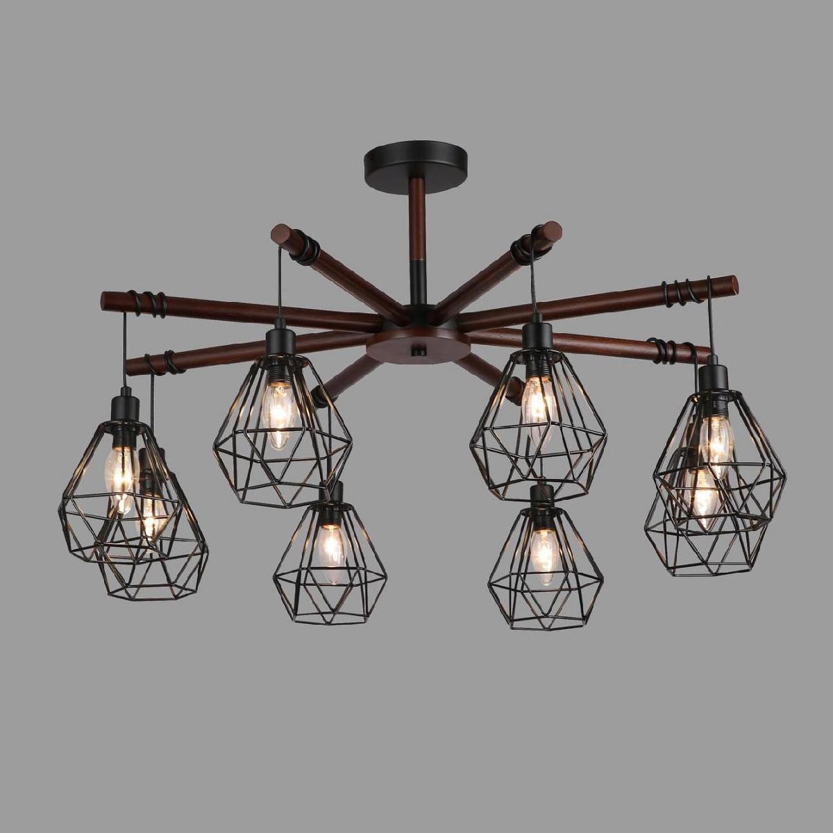 Производитель светильника рекомендует для устройства 8 ламп накаливания с цоколем E14 и мощностью 40 W, что позволит осветить помещение площадью 17,8 кв.м. Габариты изделия: высота – 450 мм, диаметр – 760 мм.