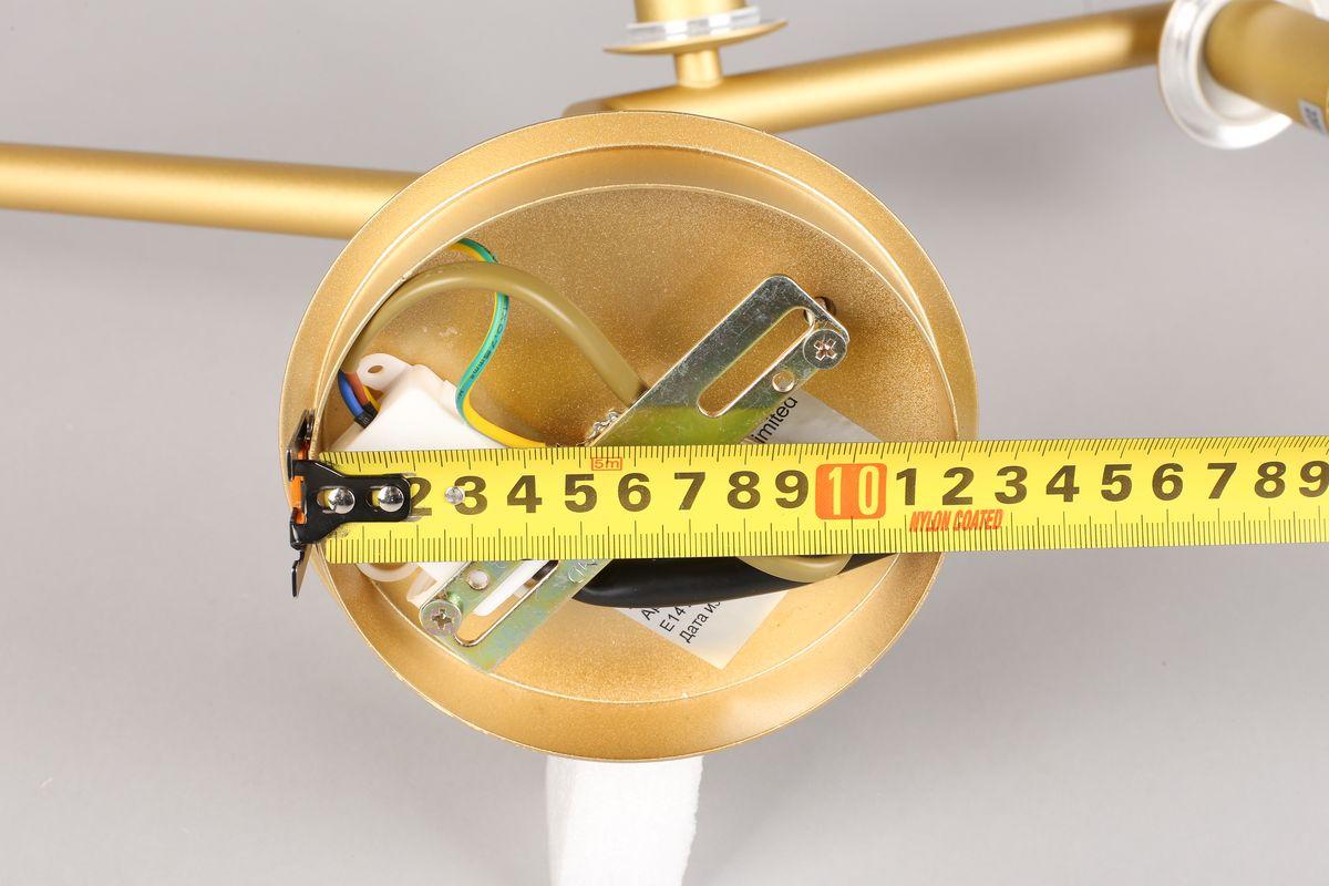 Производитель светильника рекомендует для устройства 4 лампы накаливания с цоколем E14 и мощностью 40 W, что позволит осветить помещение площадью 8,9 кв.м. Габариты изделия: высота – 500 мм, диаметр – мм.