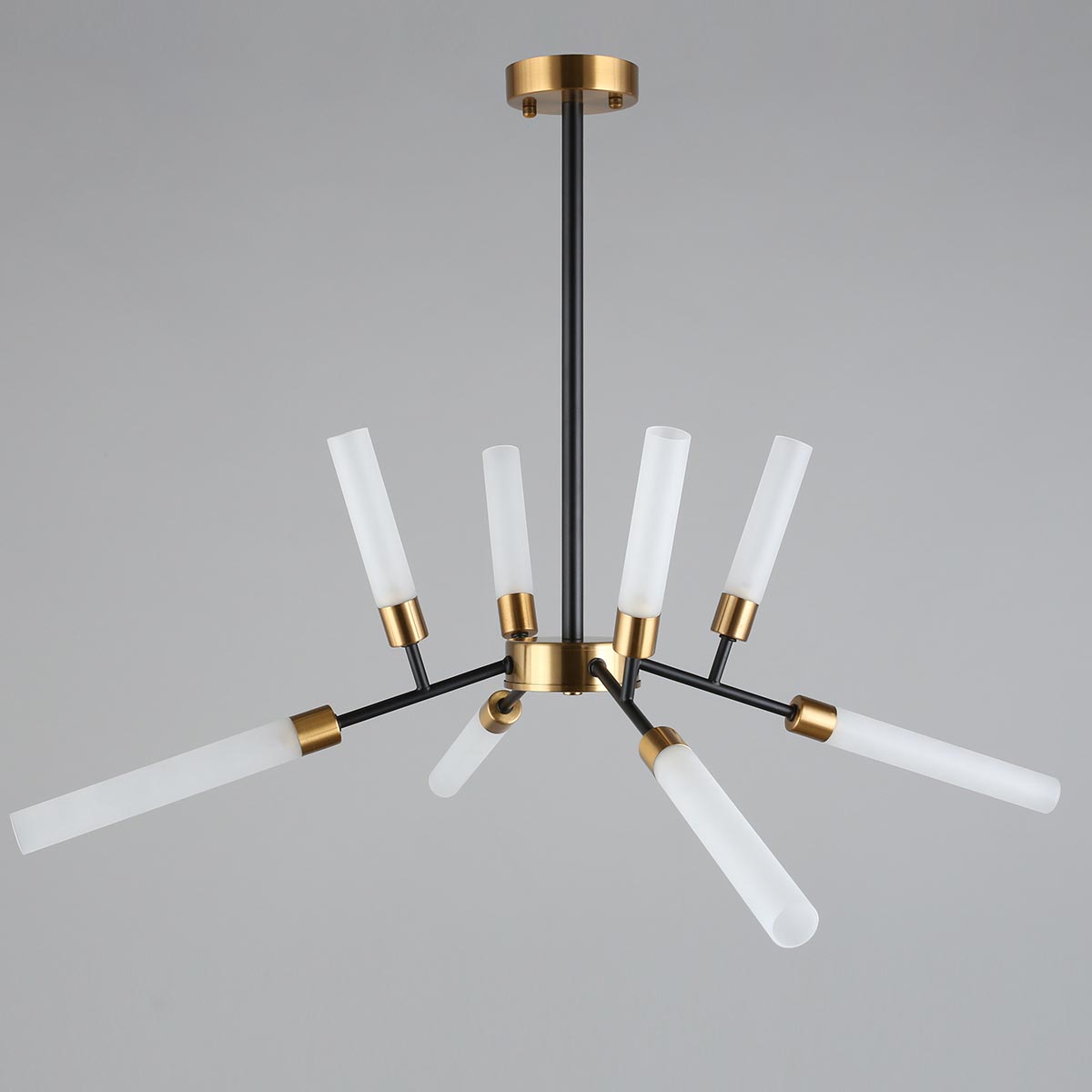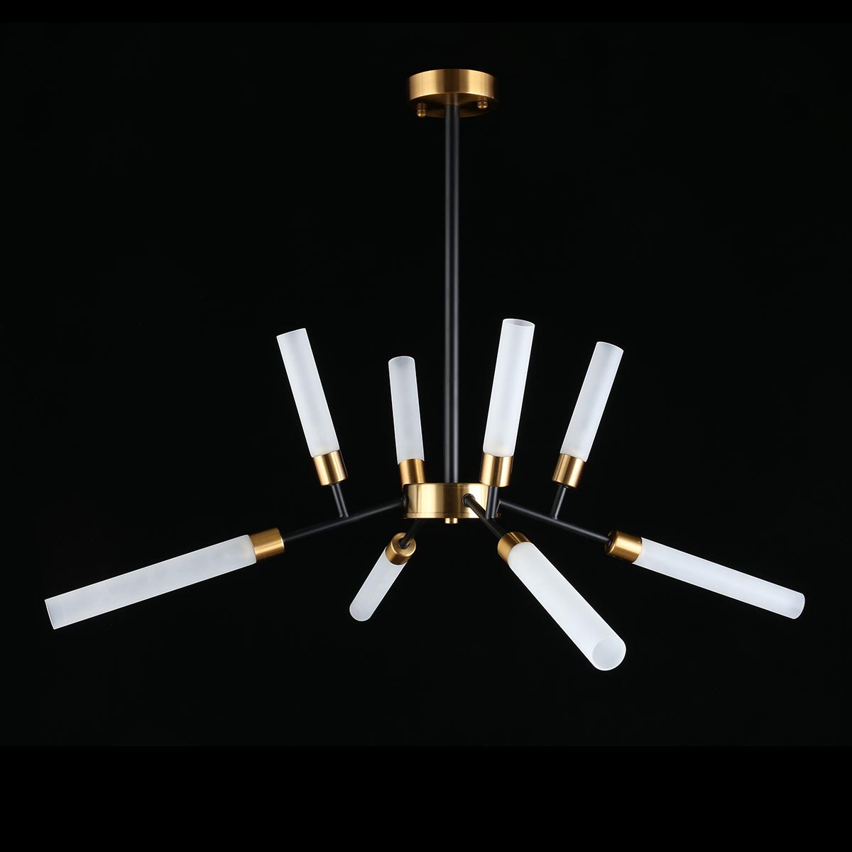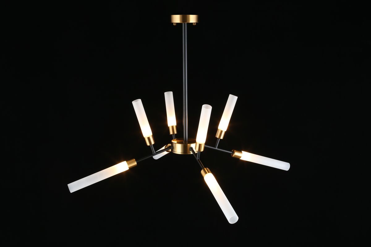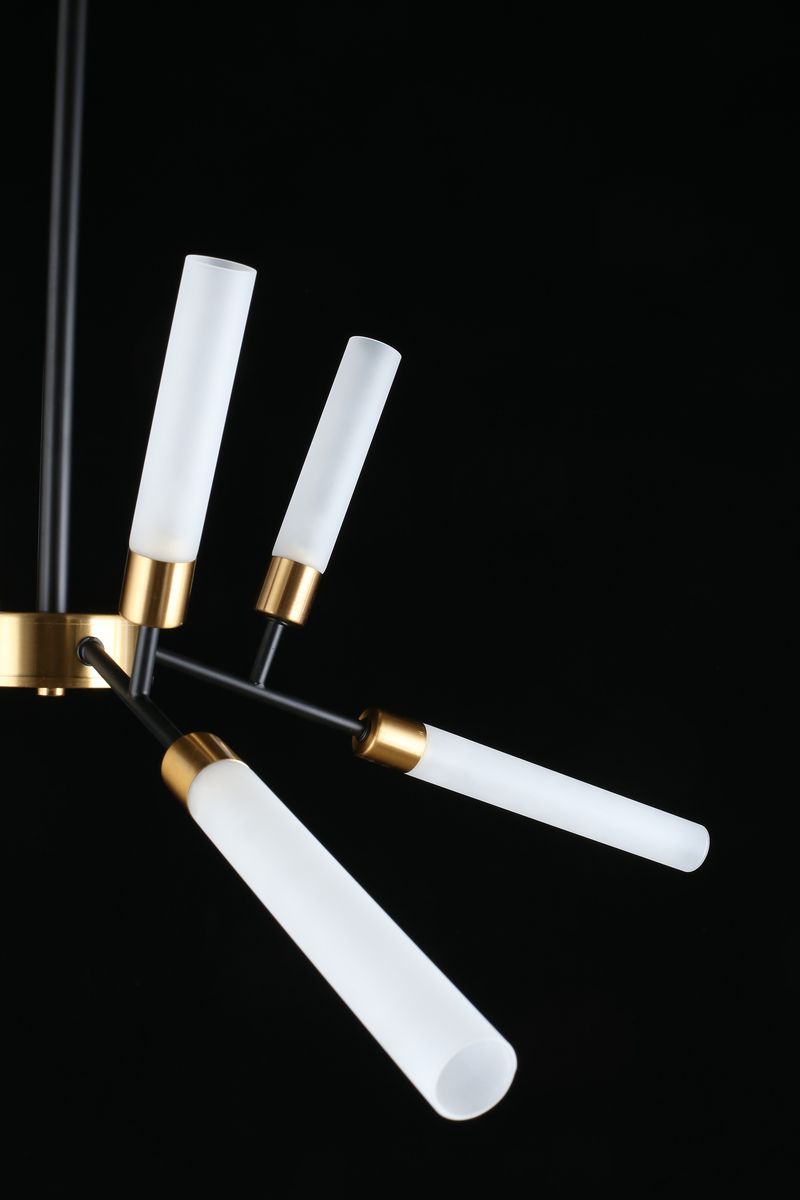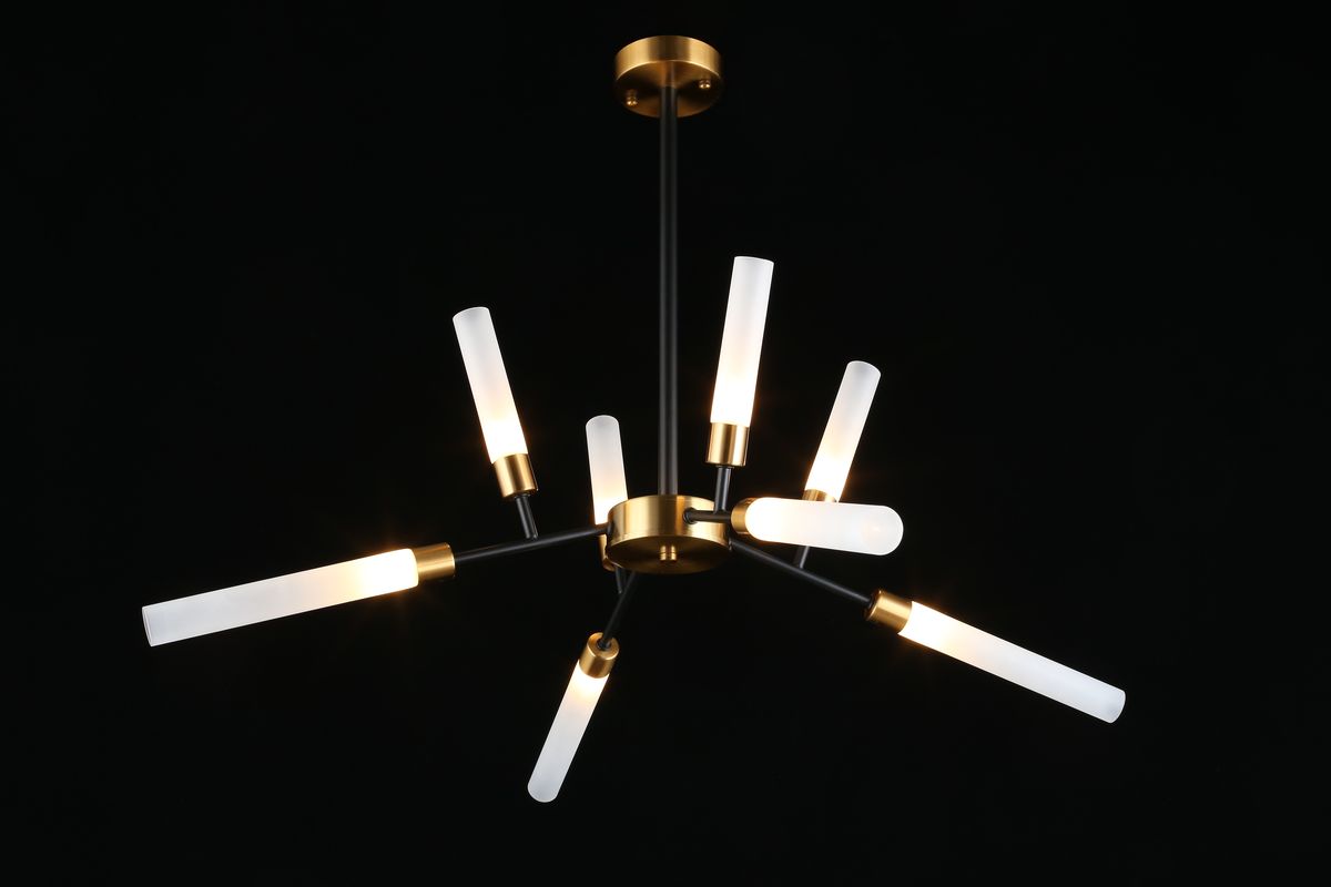 Производитель светильника рекомендует для устройства 8 светодиодных ламп с цоколем G9 и мощностью 5 W, что позволит осветить помещение площадью 20 кв.м. Габариты изделия: высота – 700 мм, диаметр – 800 мм.