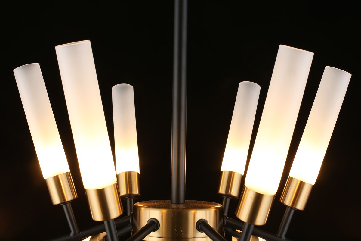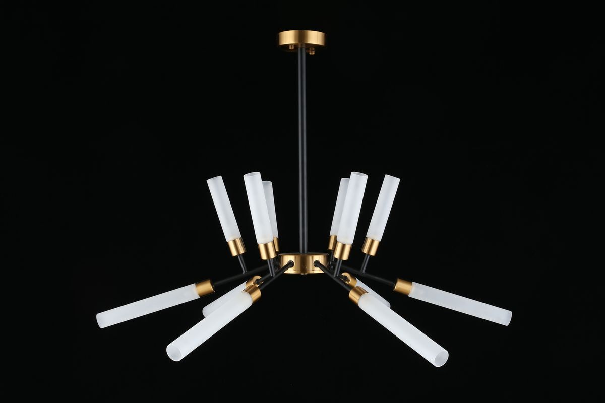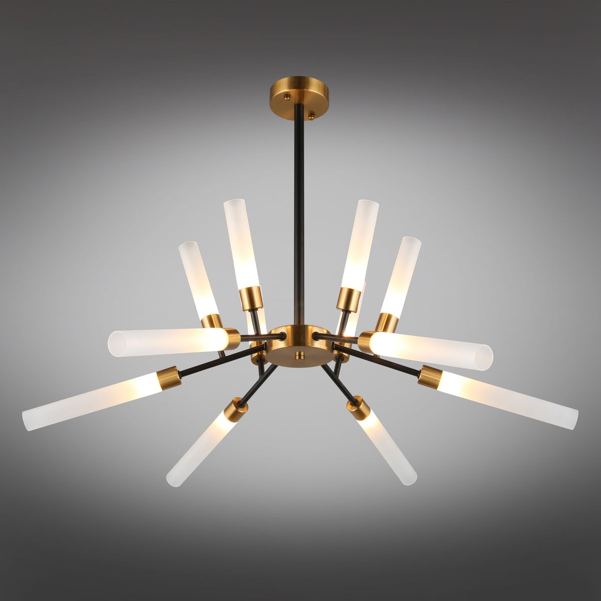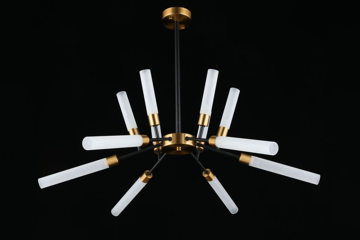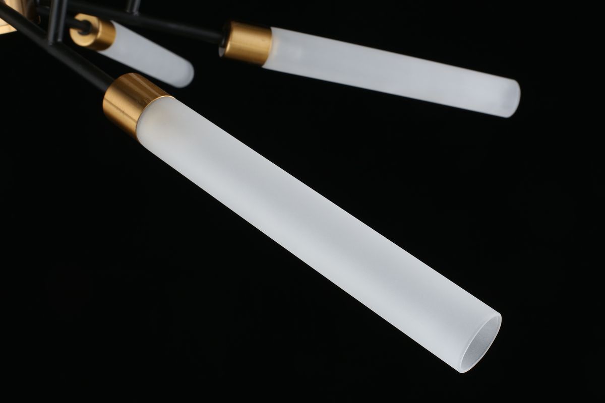 Производитель светильника рекомендует для устройства 12 светодиодных ламп с цоколем G9 и мощностью 5 W, что позволит осветить помещение площадью 30 кв.м. Габариты изделия: высота – 700 мм, диаметр – 800 мм.