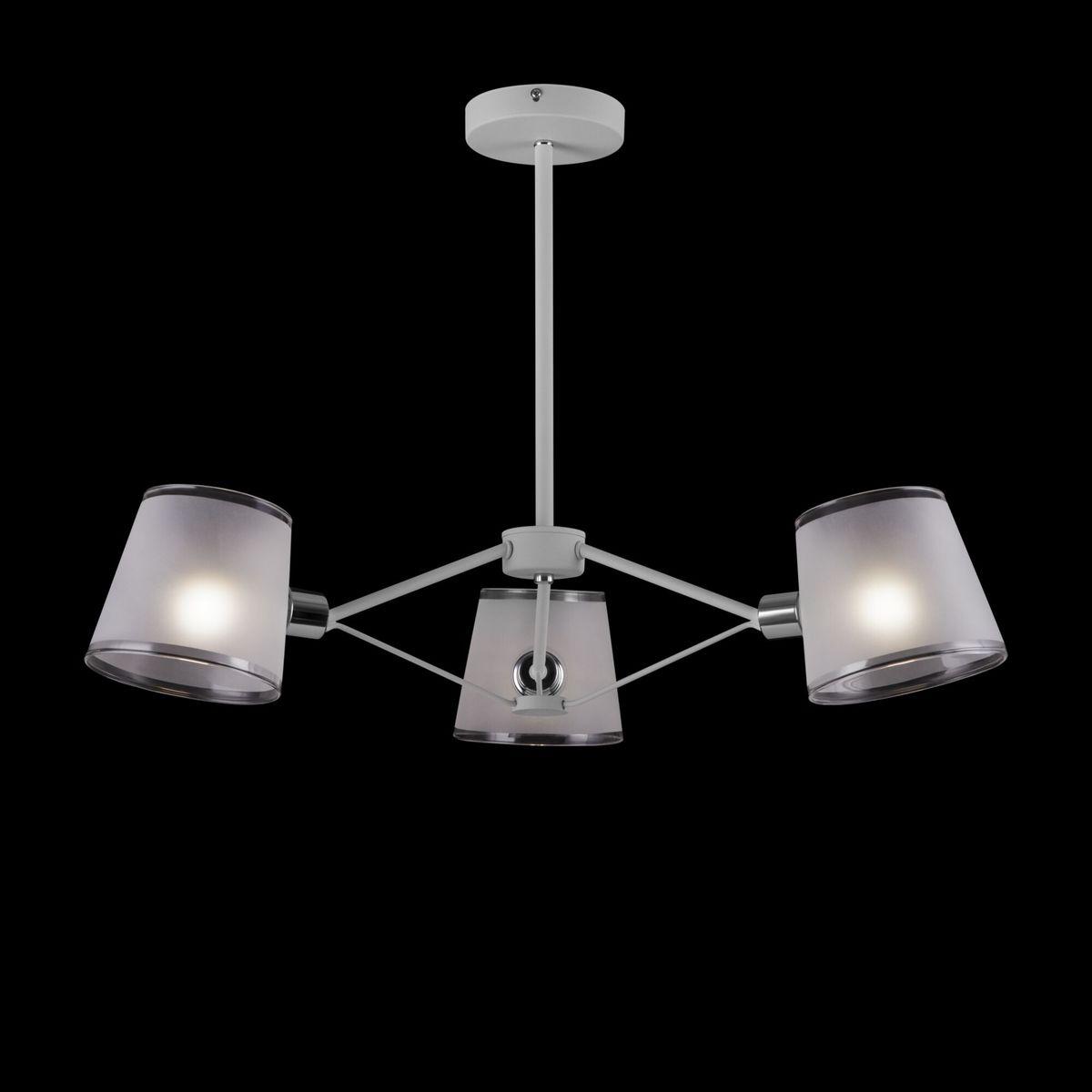 Производитель светильника рекомендует для устройства 3 лампы накаливания с цоколем E14 и мощностью 40 W, что позволит осветить помещение площадью 6,7 кв.м. Габариты изделия: высота – 460 мм, диаметр – 690 мм.