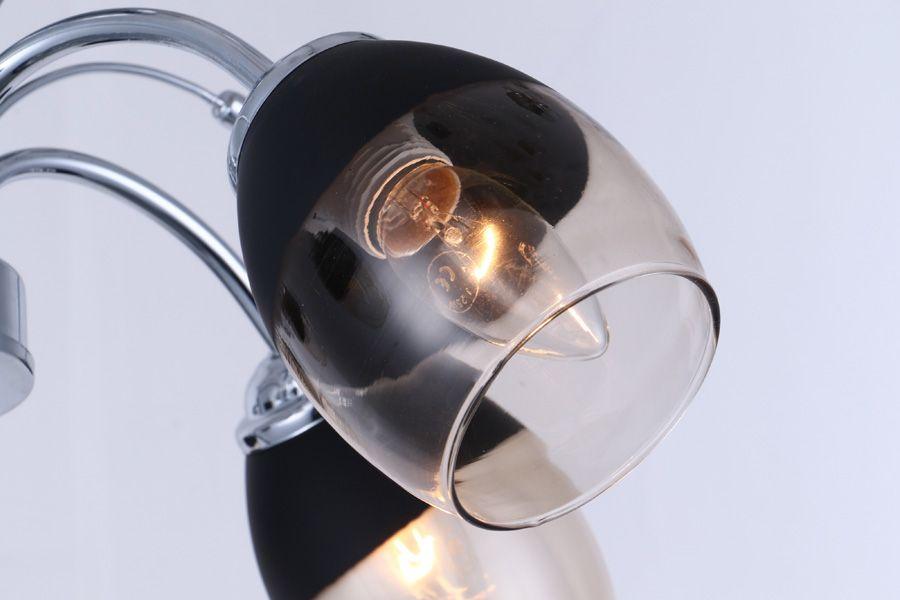 Производитель светильника рекомендует для устройства 5 ламп накаливания с цоколем E27 и мощностью 60 W, что позволит осветить помещение площадью 16,7 кв.м. Габариты изделия: высота – 260 мм, диаметр – 510 мм.