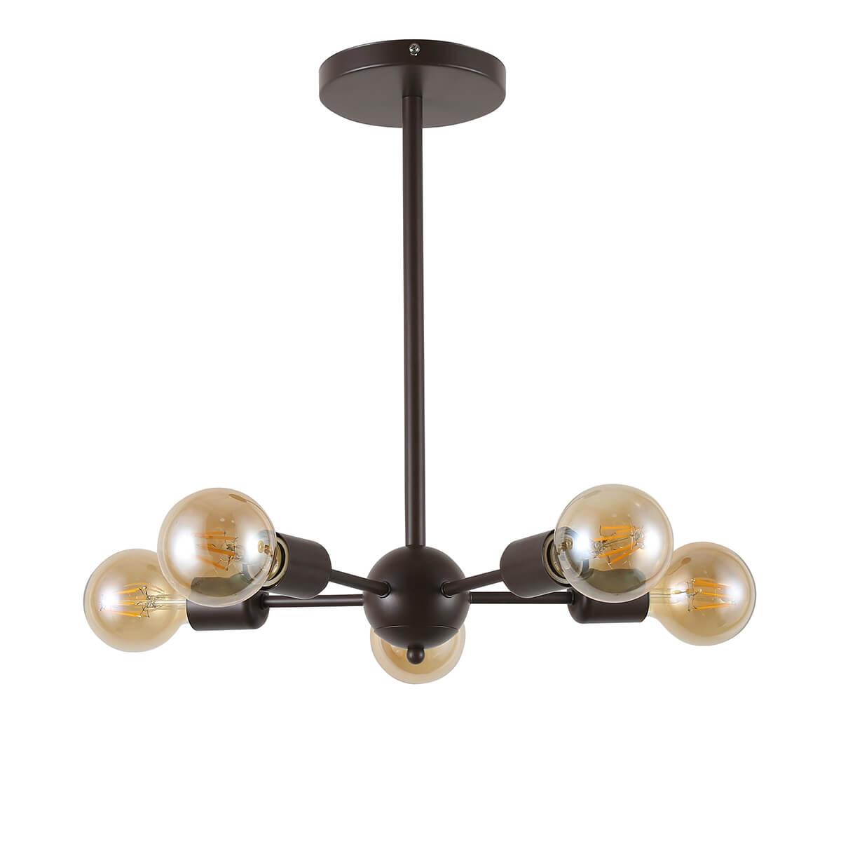 Производитель светильника рекомендует для устройства 5 ламп накаливания с цоколем E27 и мощностью 40 W, что позволит осветить помещение площадью 11 кв.м. Габариты изделия: высота – 460 мм, диаметр – мм.