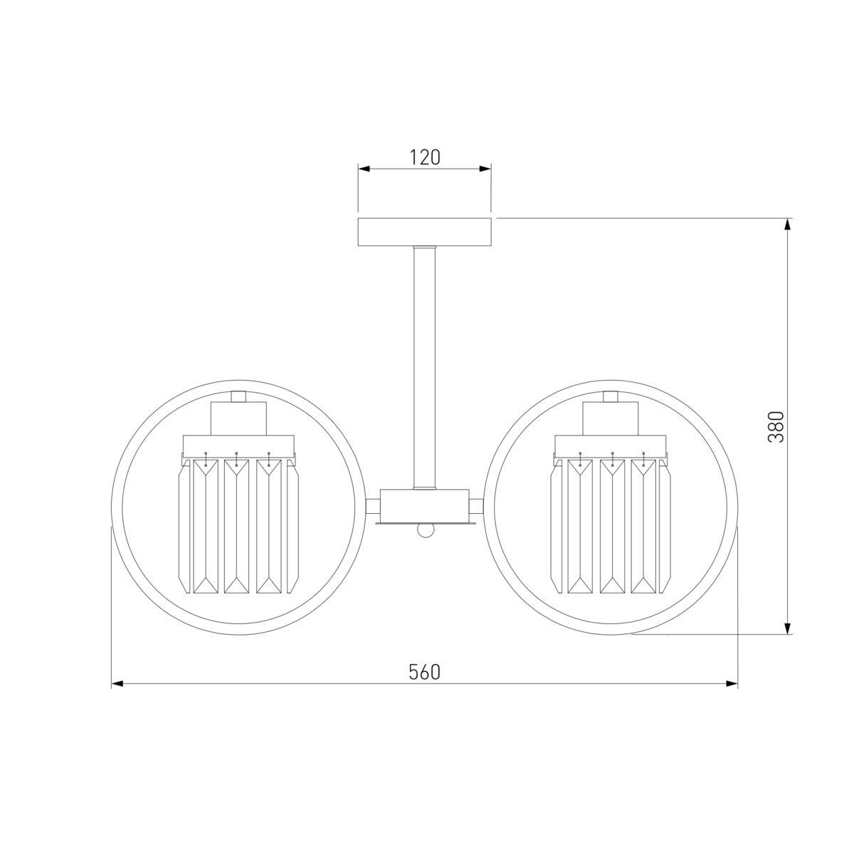 Производитель светильника рекомендует для устройства 5 ламп накаливания с цоколем E14 и мощностью 60 W, что позволит осветить помещение площадью 16,7 кв.м. Габариты изделия: высота – 360 мм, диаметр – 580 мм.
