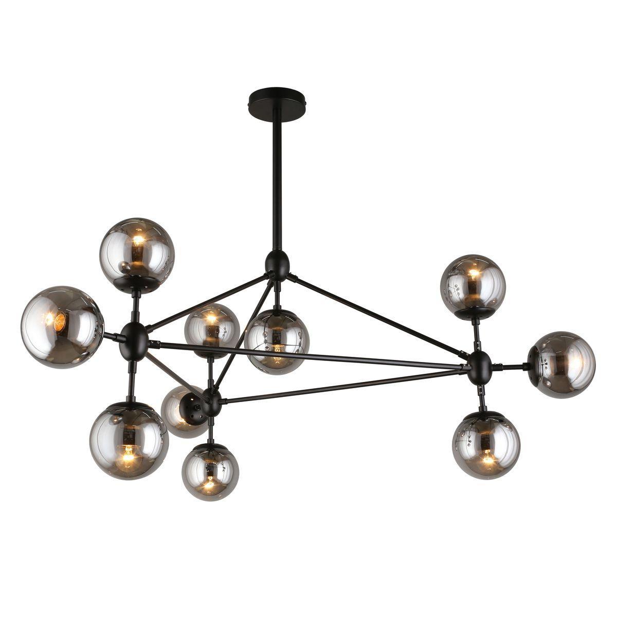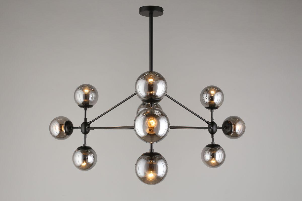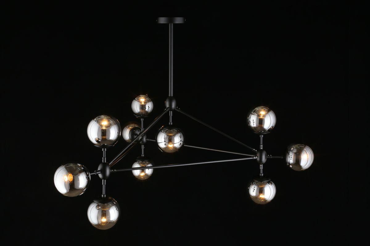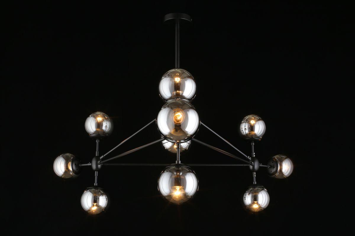 Производитель светильника рекомендует для устройства 10 ламп накаливания с цоколем E27 и мощностью 40 W, что позволит осветить помещение площадью кв.м. Габариты изделия: высота – 650 мм, диаметр – мм.