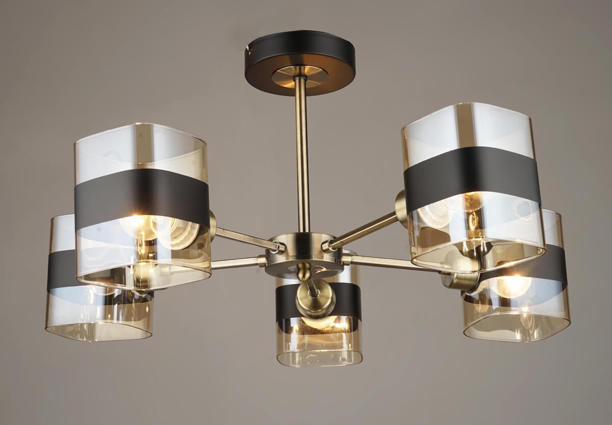 Производитель светильника рекомендует для устройства 5 ламп накаливания с цоколем E27 и мощностью 60 W, что позволит осветить помещение площадью кв.м. Габариты изделия: высота – 280 мм, диаметр – 570 мм.