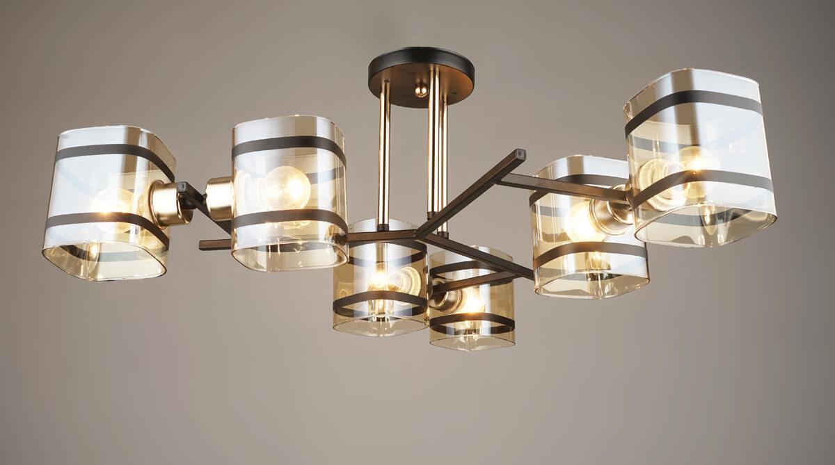 Производитель светильника рекомендует для устройства 6 ламп накаливания с цоколем E27 и мощностью 60 W, что позволит осветить помещение площадью кв.м. Габариты изделия: высота – 240 мм, диаметр – 750 мм.