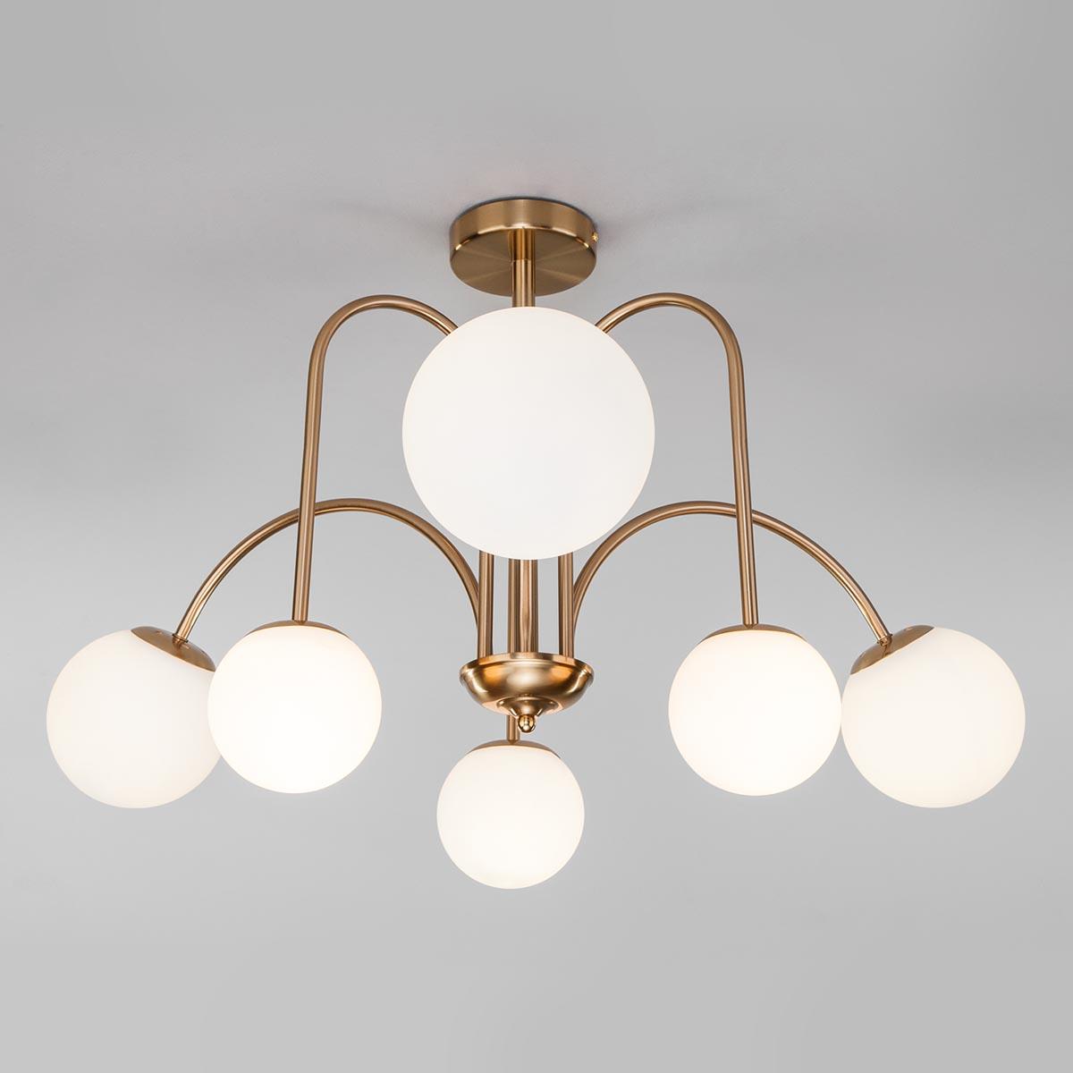 Потолочная люстра Eurosvet Alix 30177/6 латунь от Китайского бренда из коллекции Alix будет удачно смотреться в гостиной в современном стиле. Светильник выполнен из стекла с плафонами в форме белого цвета.