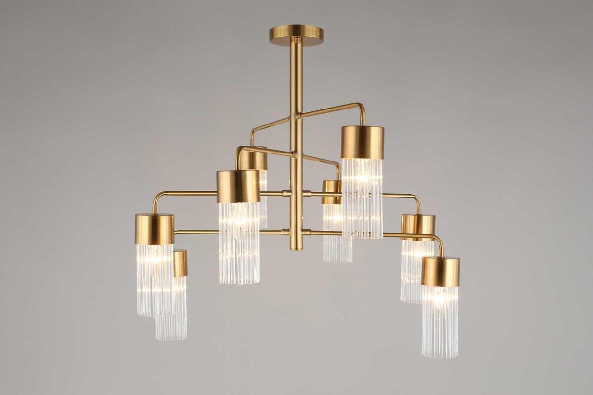 Производитель светильника рекомендует для устройства 8 ламп накаливания с цоколем E14 и мощностью W, что позволит осветить помещение площадью кв.м. Габариты изделия: высота – мм, диаметр – мм.