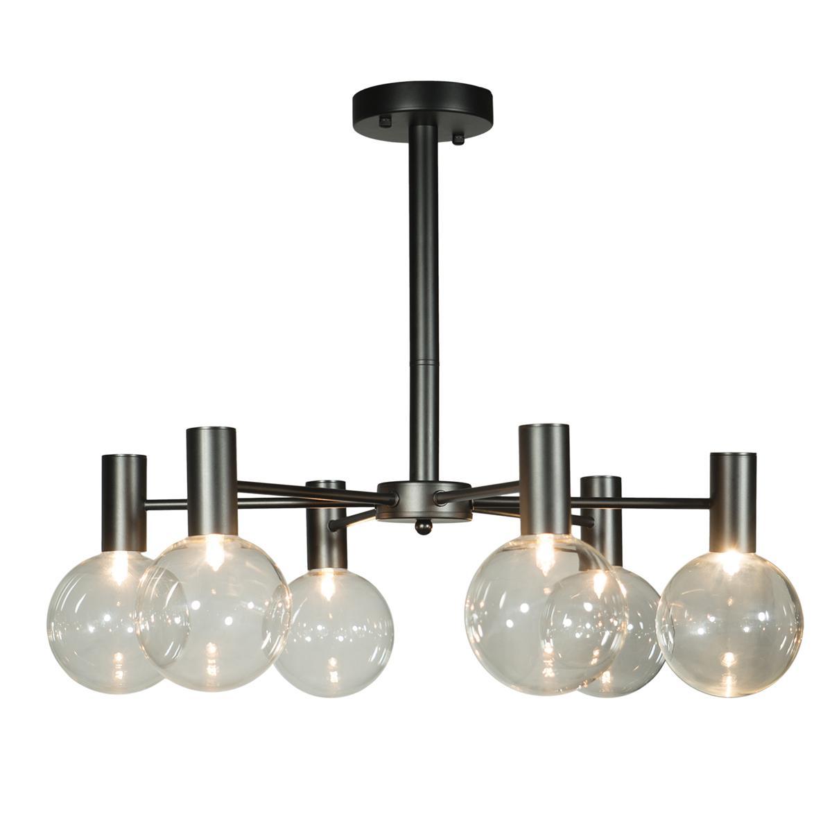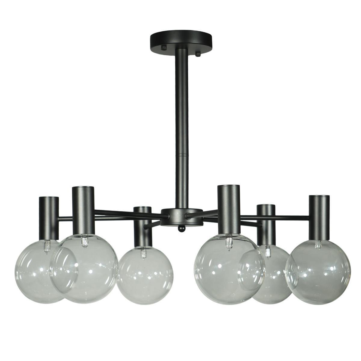 Производитель светильника рекомендует для устройства 6 галогеновых ламп с цоколем G9 и мощностью 40 W, что позволит осветить помещение площадью кв.м. Габариты изделия: высота – 480 мм, диаметр – 640 мм.