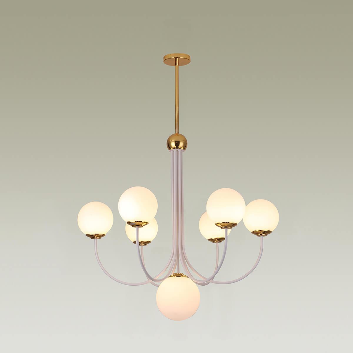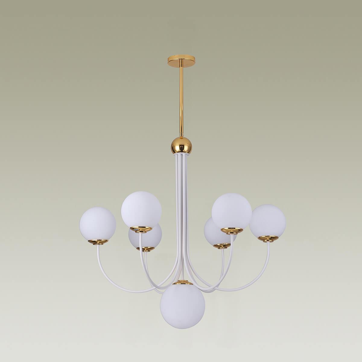 Подвесная люстра Moderli Svetlana V3002-7C от Китайского бренда из коллекции Svetlana будет удачно смотреться в гостиной в стиле модерн. Светильник выполнен из стекла с плафонами в форме белого цвета.