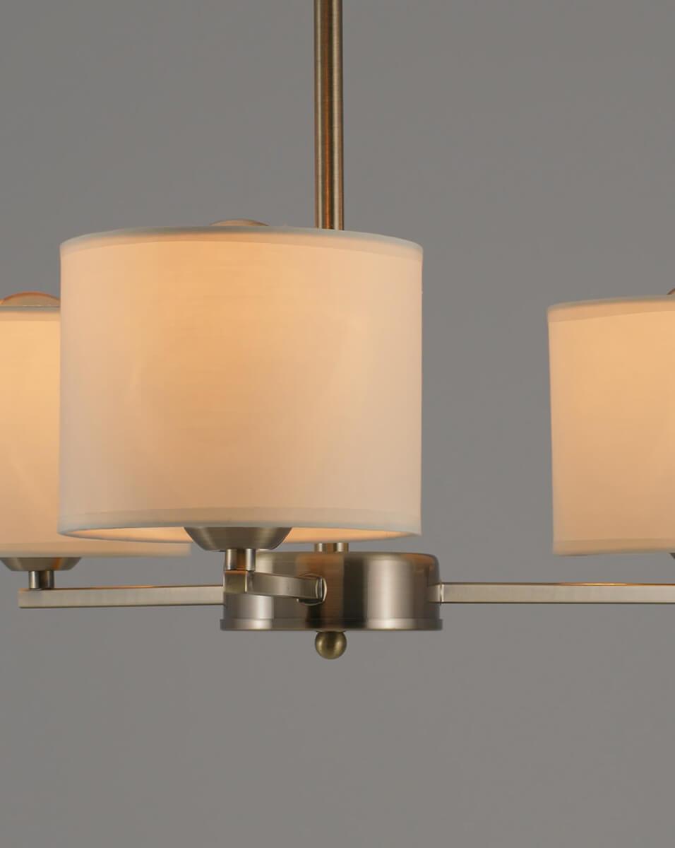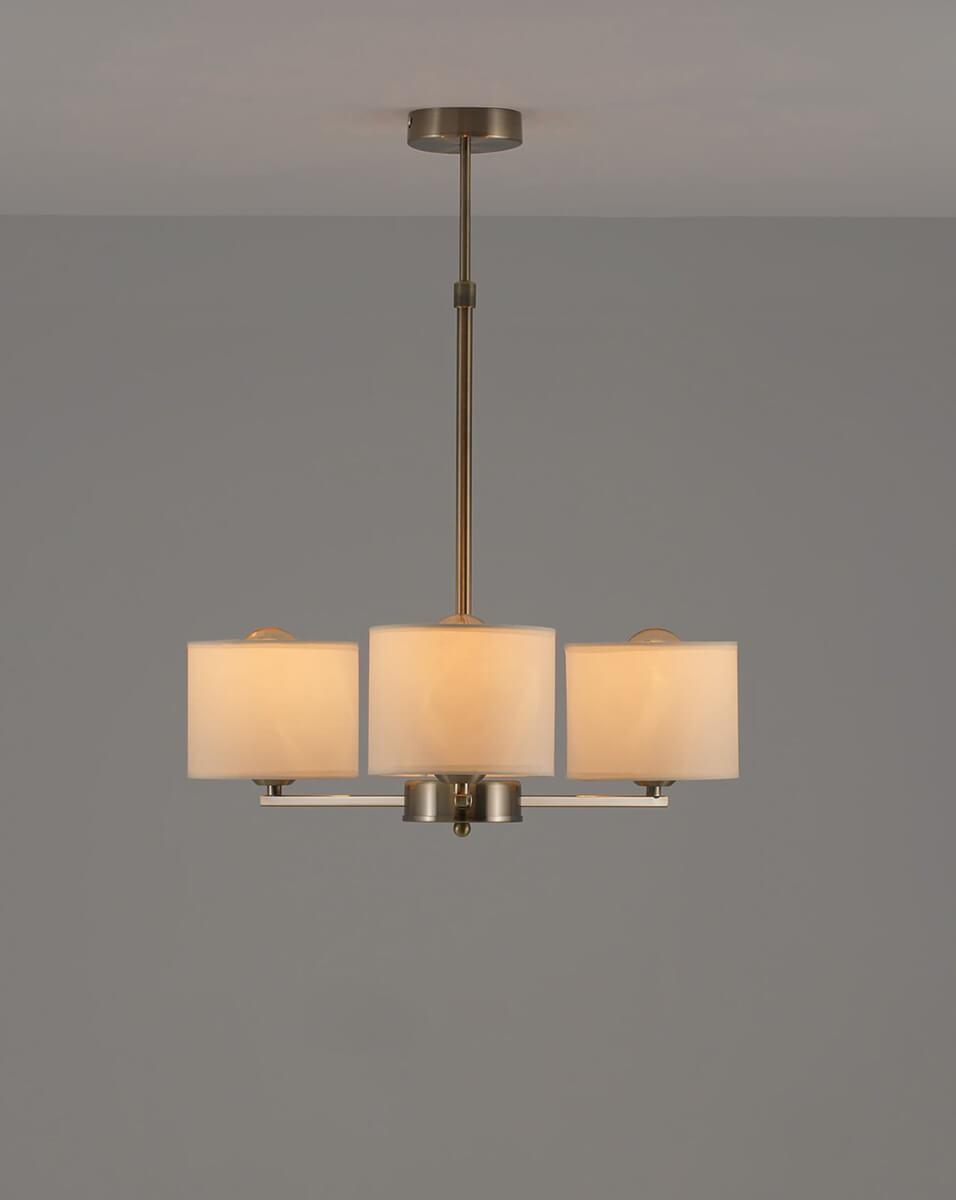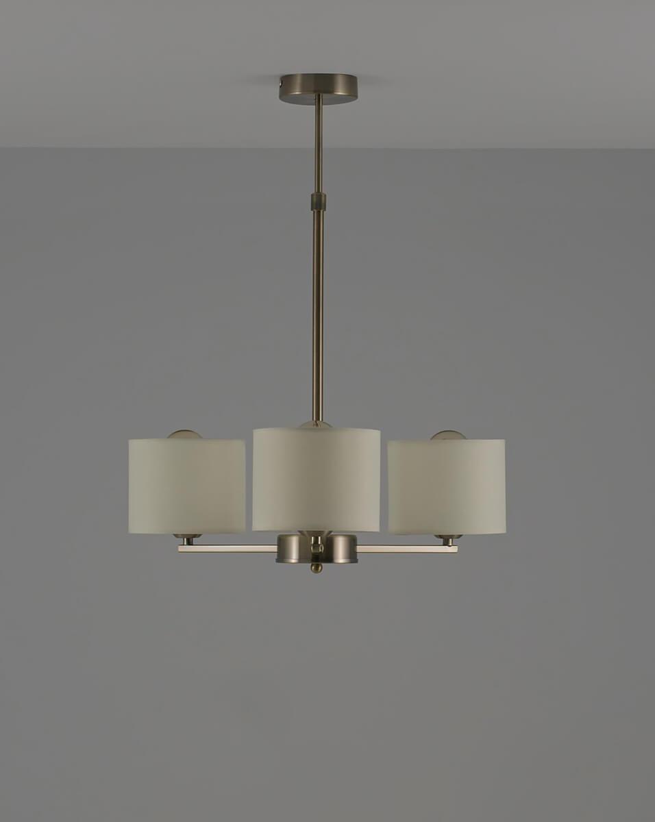 Подвесная люстра Moderli Vesta V1171-3P от Китайского бренда из коллекции Vesta будет удачно смотреться в кухне в неоклассическом стиле. Светильник выполнен из ткани с плафонами в форме бежевого цвета.