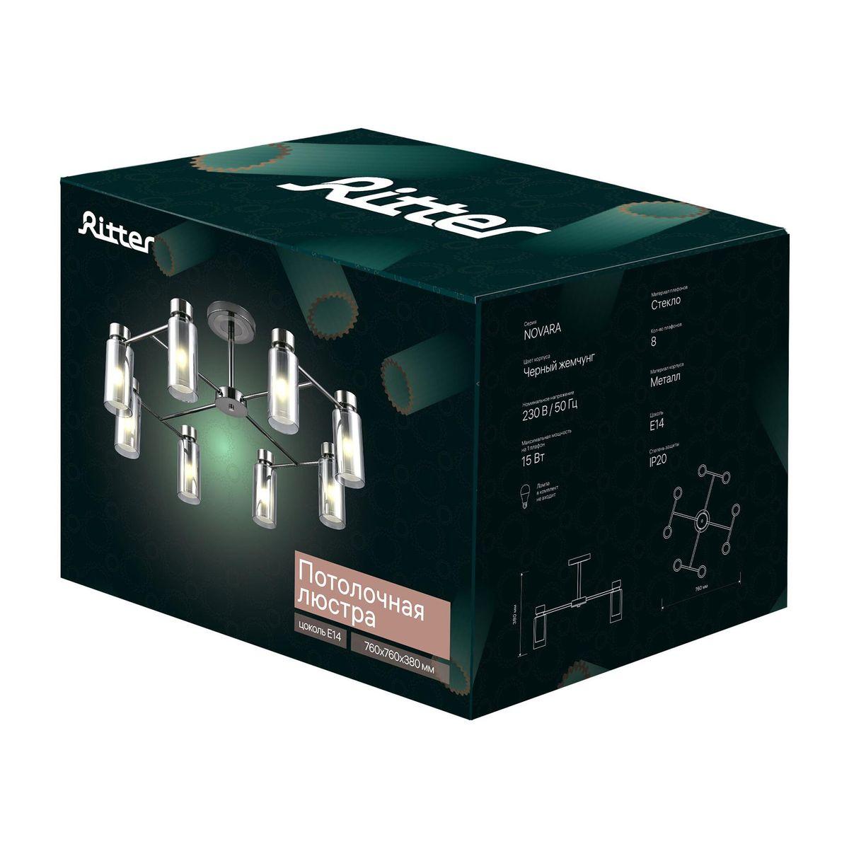 Потолочная люстра Ritter Novara 52556 1 от Китайского бренда из коллекции Novara будет удачно смотреться в гостиной в хай-тек стиле. Светильник выполнен из стекла с плафонами в форме цвет хрома.