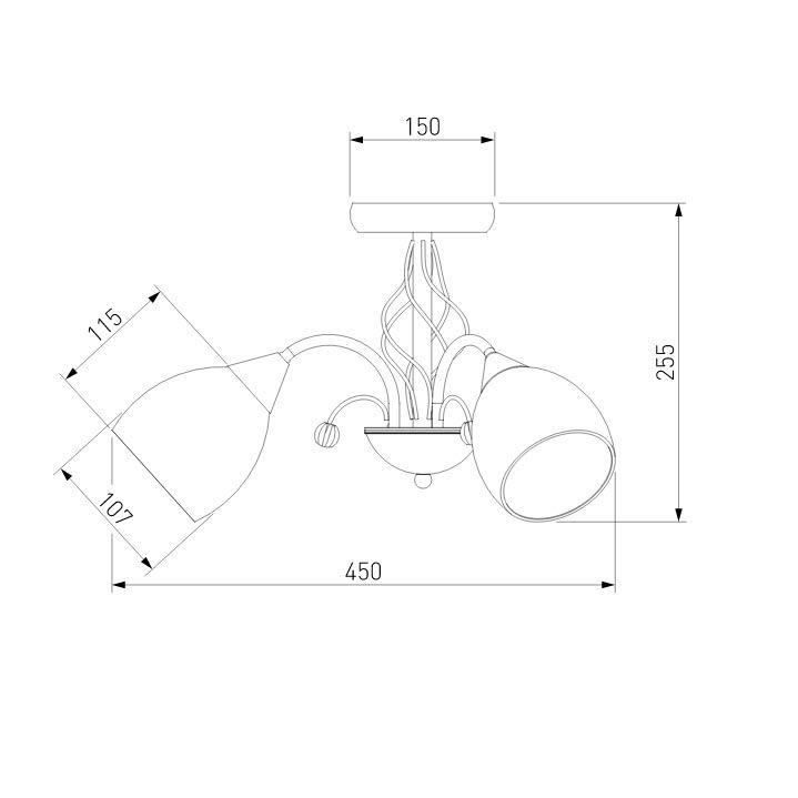 Производитель светильника рекомендует для устройства 3 лампы накаливания с цоколем E27 и мощностью 60 W, что позволит осветить помещение площадью 14 кв.м. Габариты изделия: высота – 270 мм, диаметр – мм.