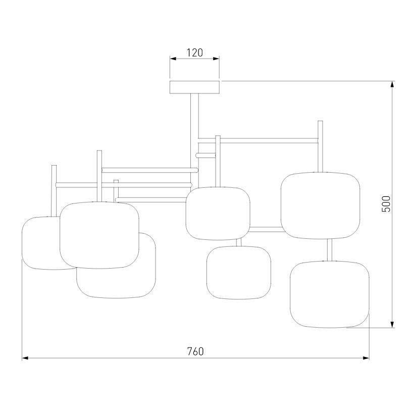 Производитель светильника рекомендует для устройства 7 галогеновых ламп с цоколем G4 и мощностью 3 W, что позволит осветить помещение площадью 5 кв.м. Габариты изделия: высота – 500 мм, диаметр – 760 мм.