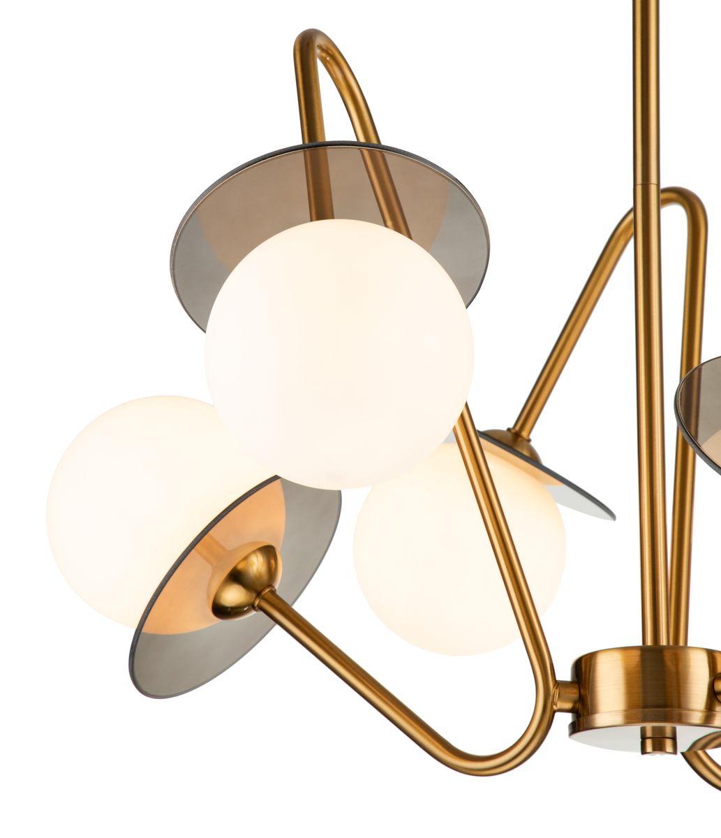 Потолочная люстра Indigo Jazz 11020/6R Brass V000165 от Китайского бренда из коллекции Jazz будет удачно смотреться в спальни в стиле модерн. Светильник выполнен из стекла с плафонами в форме белого цвета.