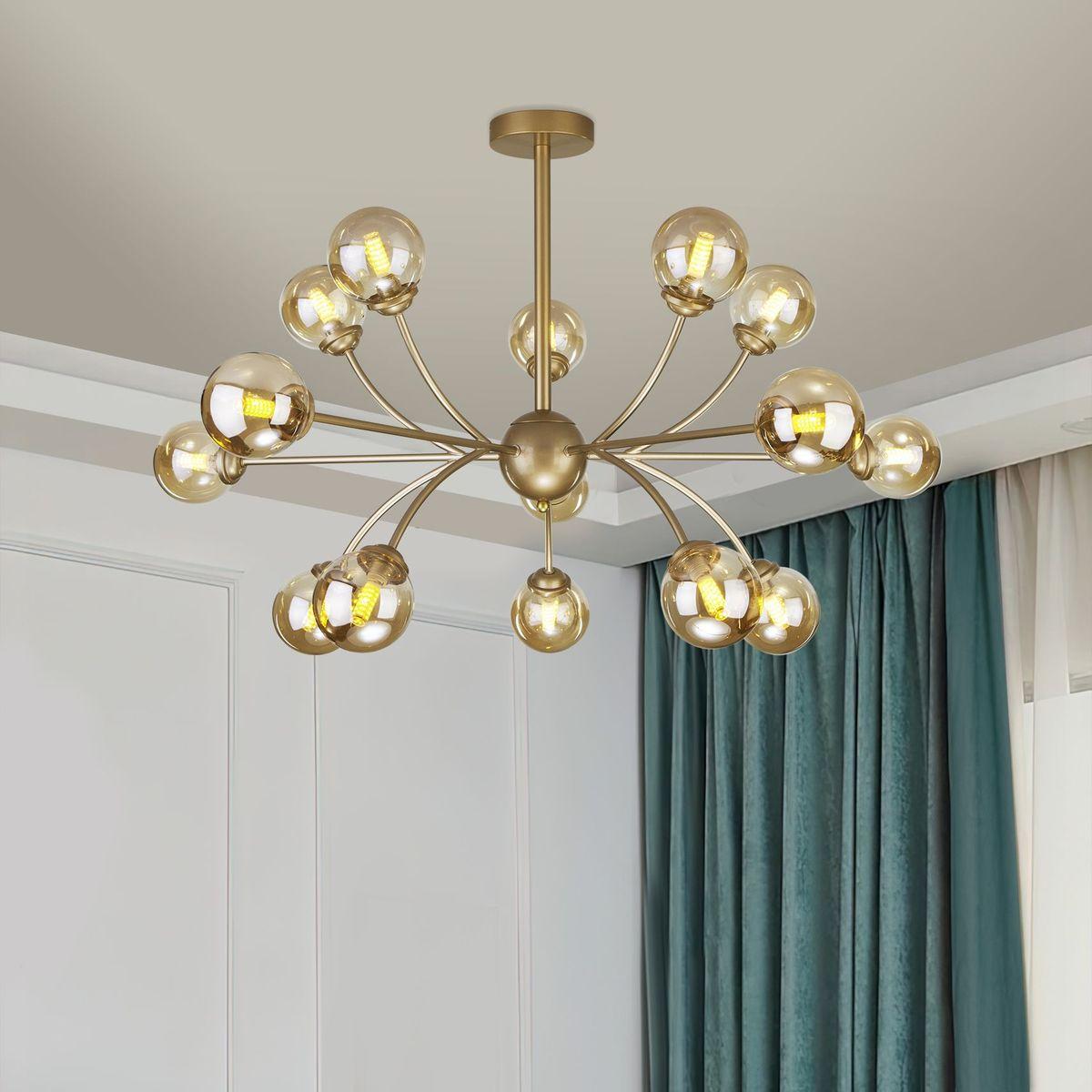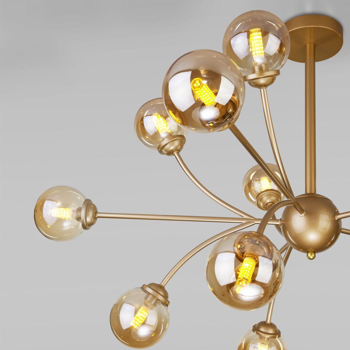 Подвесная люстра Eurosvet Astro 30180 матовое золото от Китайского бренда из коллекции Astro будет удачно смотреться в гостиной в современном стиле. Светильник выполнен из стекла с плафонами в форме янтарного цвета.