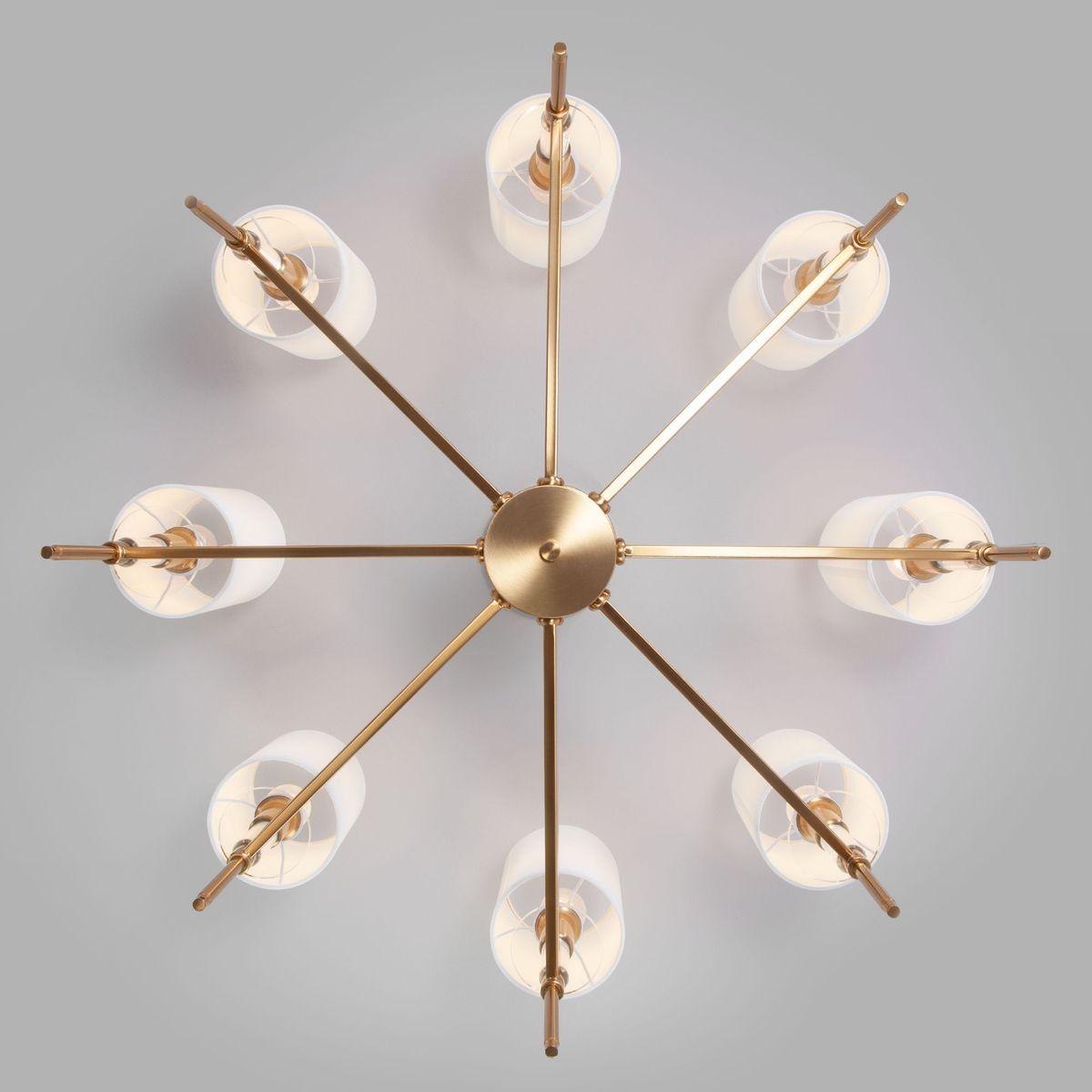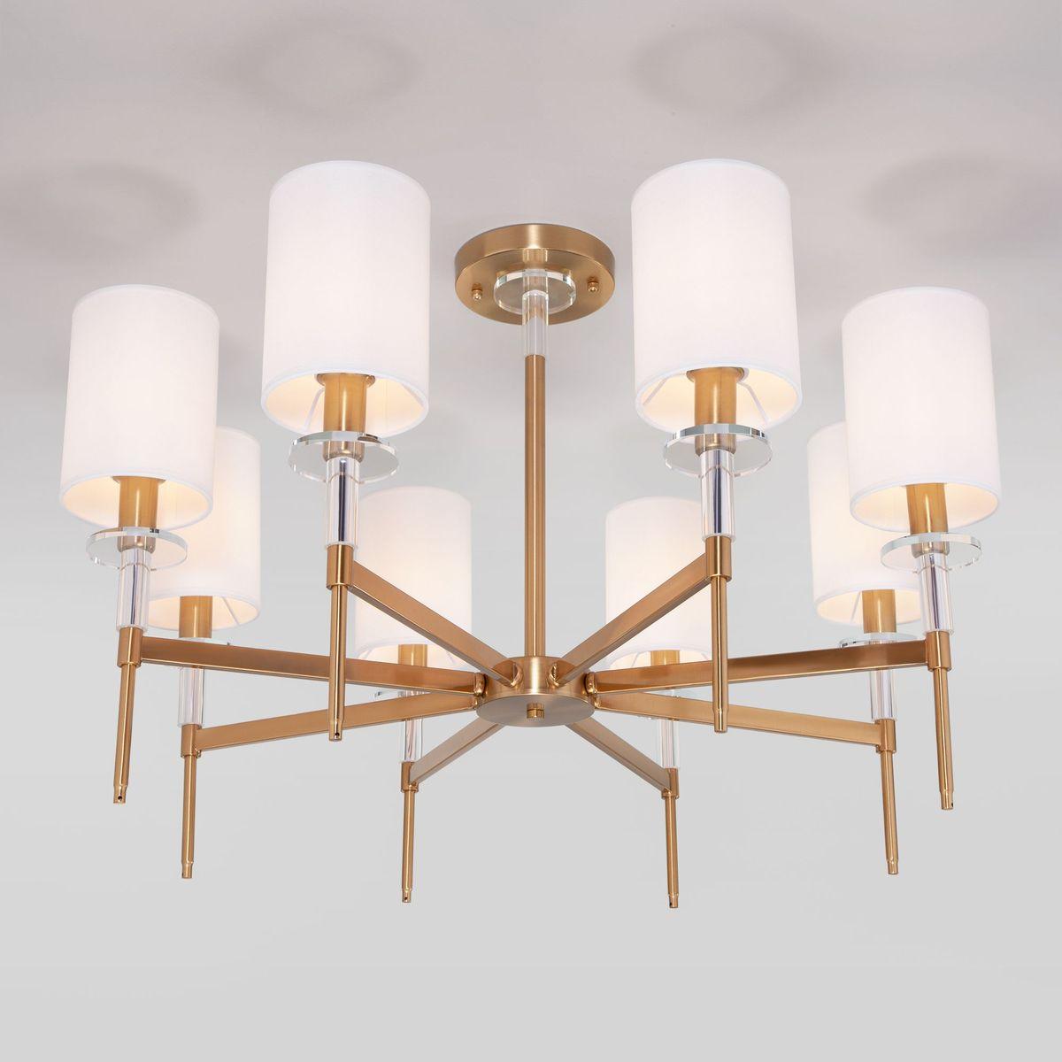 Подвесная люстра Eurosvet Brielle 60132/8 латунь от Китайского бренда из коллекции Brielle будет удачно смотреться в гостиной в американском стиле. Светильник выполнен из ткани с плафонами в форме белого цвета.