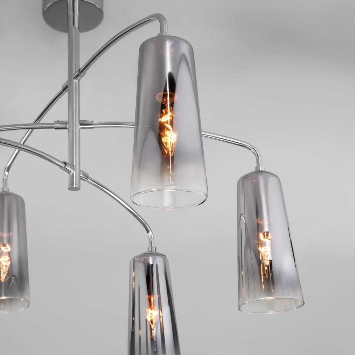 Подвесная люстра Eurosvet Omber 70137/6 хром от Китайского бренда из коллекции Omber будет удачно смотреться в спальни в хай-тек стиле. Светильник выполнен из стекла с плафонами в форме дымчатого цвета.