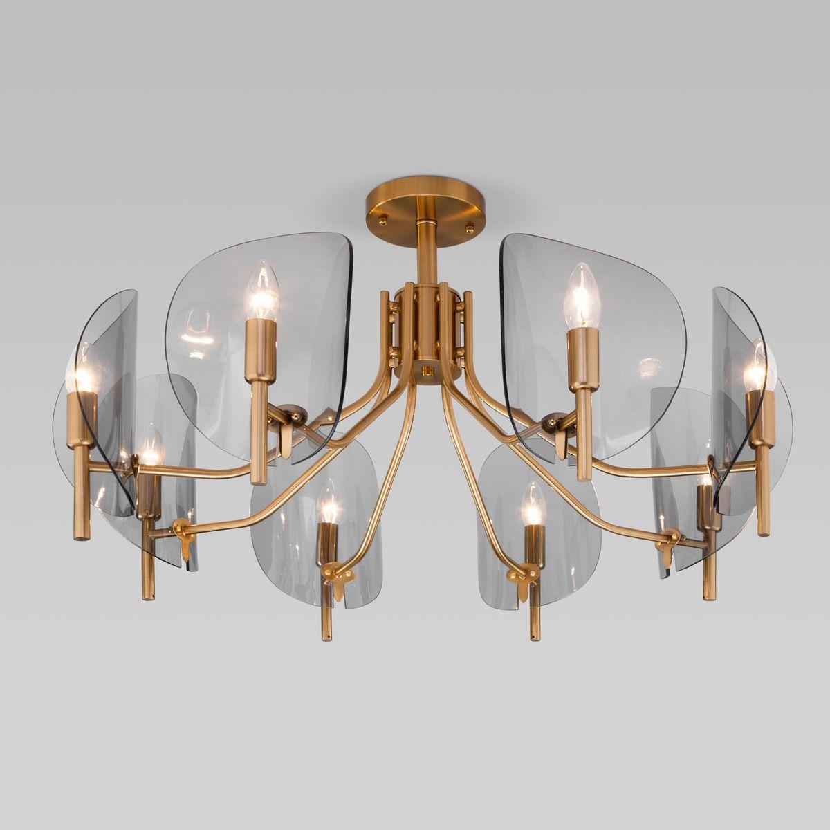 Потолочная люстра Eurosvet Rocco 60135/8 латунь от Китайского бренда из коллекции Rocco будет удачно смотреться в гостиной в стиле кантри. Светильник выполнен из стекла с плафонами в форме дымчатого цвета.