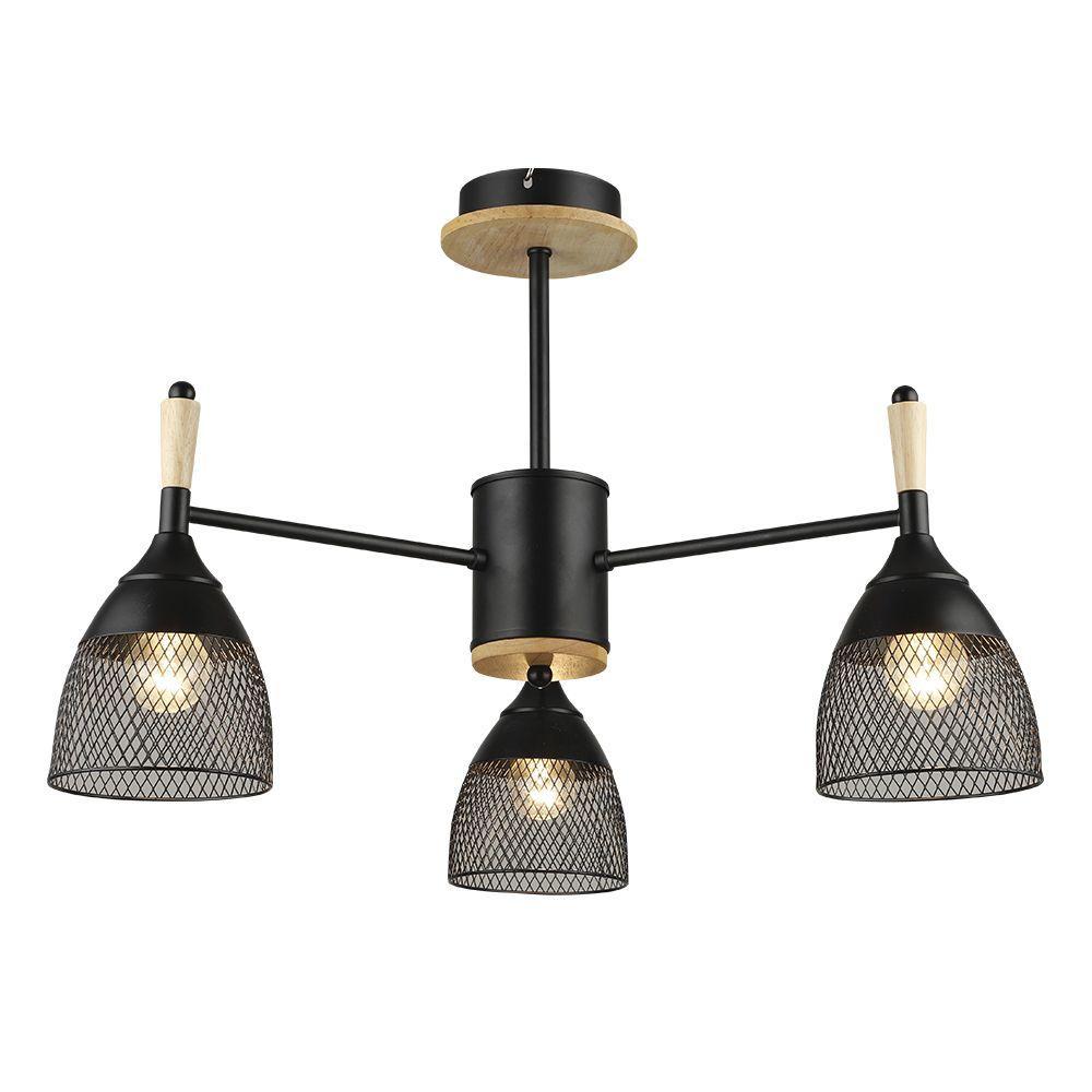 Производитель светильника рекомендует для устройства 3 лампы накаливания с цоколем E27 и мощностью 60 W, что позволит осветить помещение площадью 9 кв.м. Габариты изделия: высота – 385 мм, диаметр – 595 мм.