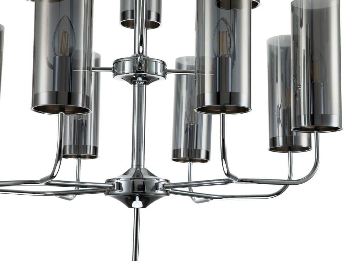Подвесная люстра Indigo Balletto 13014/12R Chrome V000259 от Китайского бренда из коллекции Balletto будет удачно смотреться в гостиной в минималистическом стиле. Светильник выполнен из стекла с плафонами в форме дымчатого цвета.