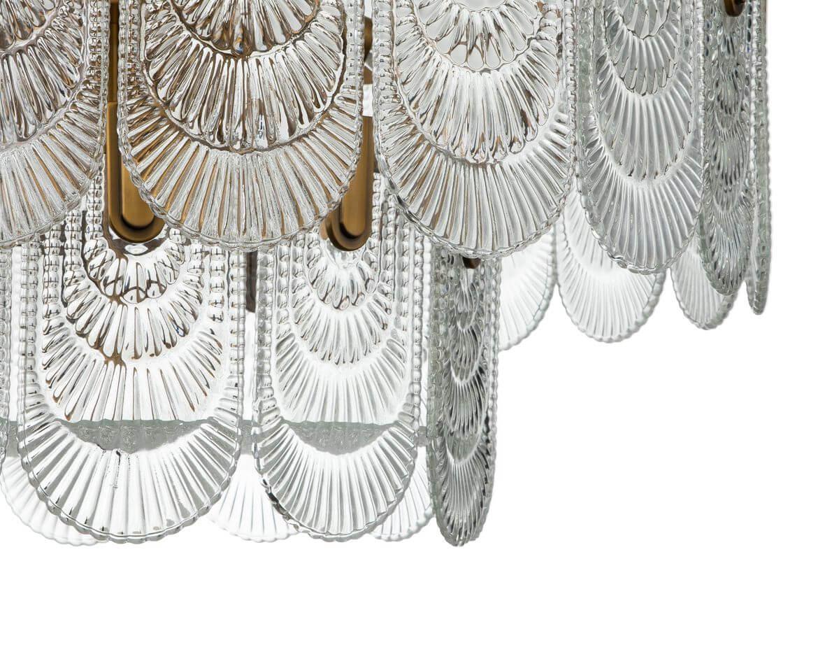 Подвесная люстра Indigo Salice 12022/A/9R Brass V000024 от Китайского бренда из коллекции Salice будет удачно смотреться в гостиной в стиле модерн. Светильник выполнен из стекла с плафонами в форме прозрачного цвета.