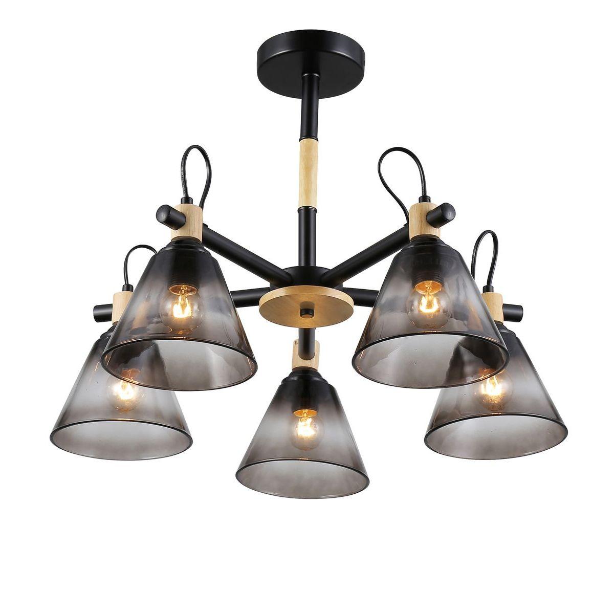 Производитель светильника рекомендует для устройства 5 ламп накаливания с цоколем E27 и мощностью 40 W, что позволит осветить помещение площадью 15 кв.м. Габариты изделия: высота – 420 мм, диаметр – 570 мм.