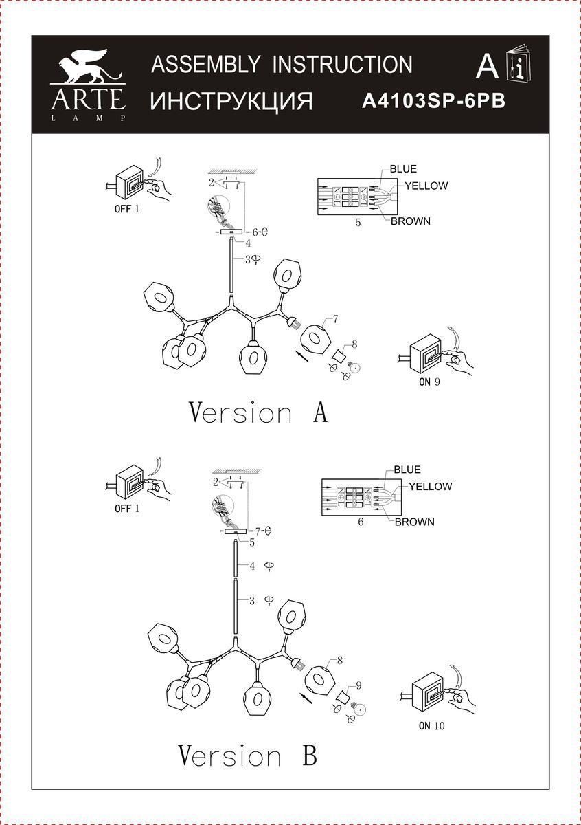 Подвесная люстра Arte Lamp Yuka A4103SP-6PB