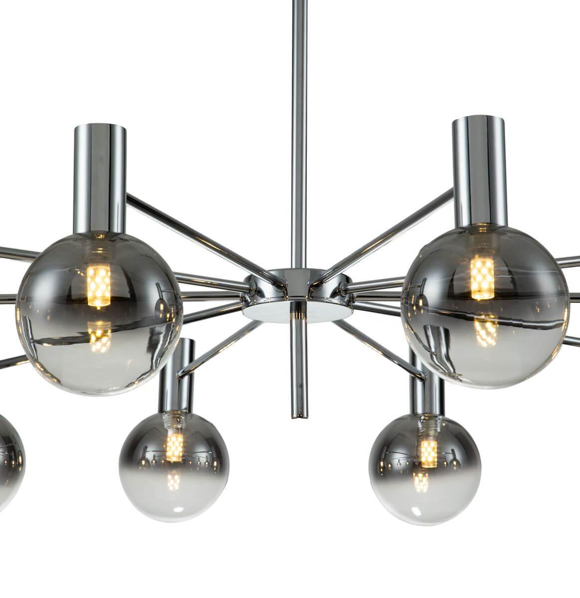 Подвесная люстра Indigo Collana 13015/10R Chrome V000225 от Китайского бренда из коллекции Collana будет удачно смотреться в гостиной в хай-тек стиле. Светильник выполнен из стекла с плафонами в форме дымчатого цвета.