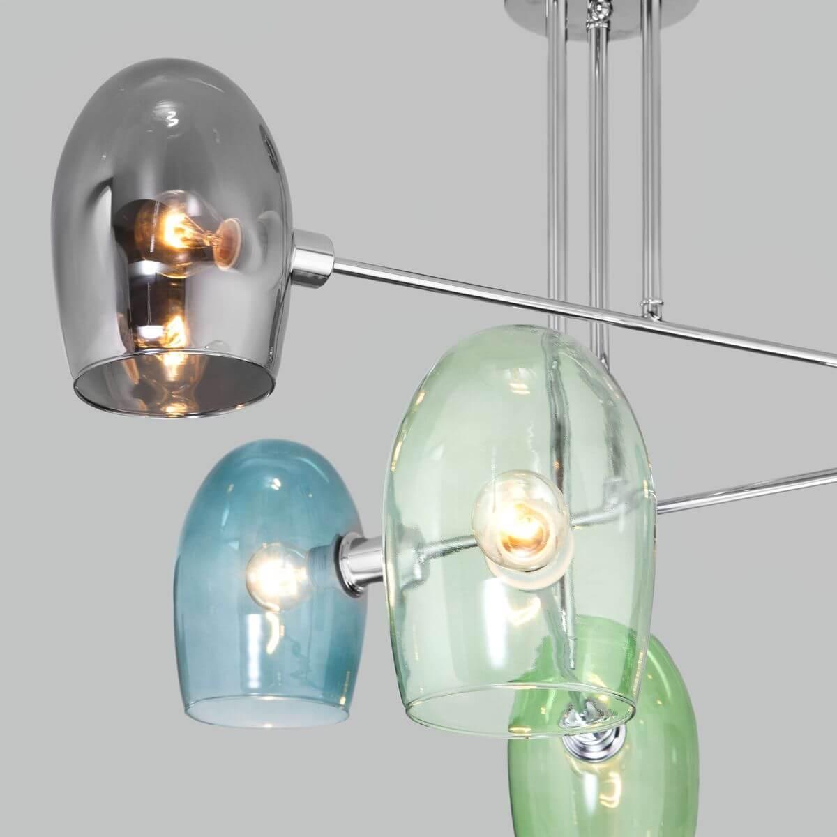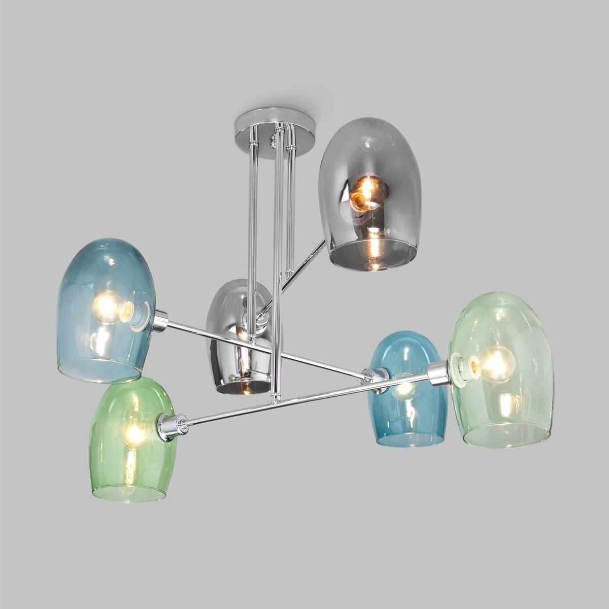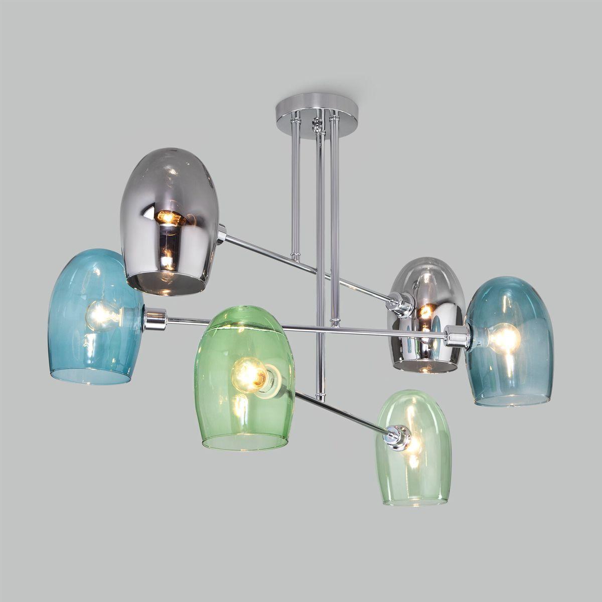 Подвесная люстра Eurosvet Gardie 70141/6 хром от Китайского бренда из коллекции Gardie будет удачно смотреться в кухне в скандинавском стиле. Светильник выполнен из стекла с плафонами в форме разноцветного цвета.