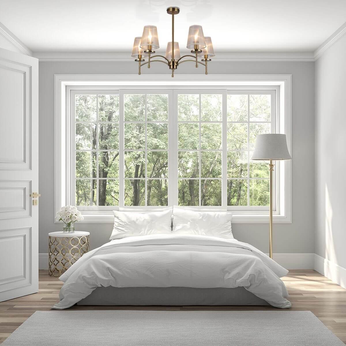 Подвесная люстра Escada Faith 694/5PL Gold от Китайского бренда из коллекции Faith будет удачно смотреться в спальни в стиле модерн. Светильник выполнен из ткани с плафонами в форме белого цвета.