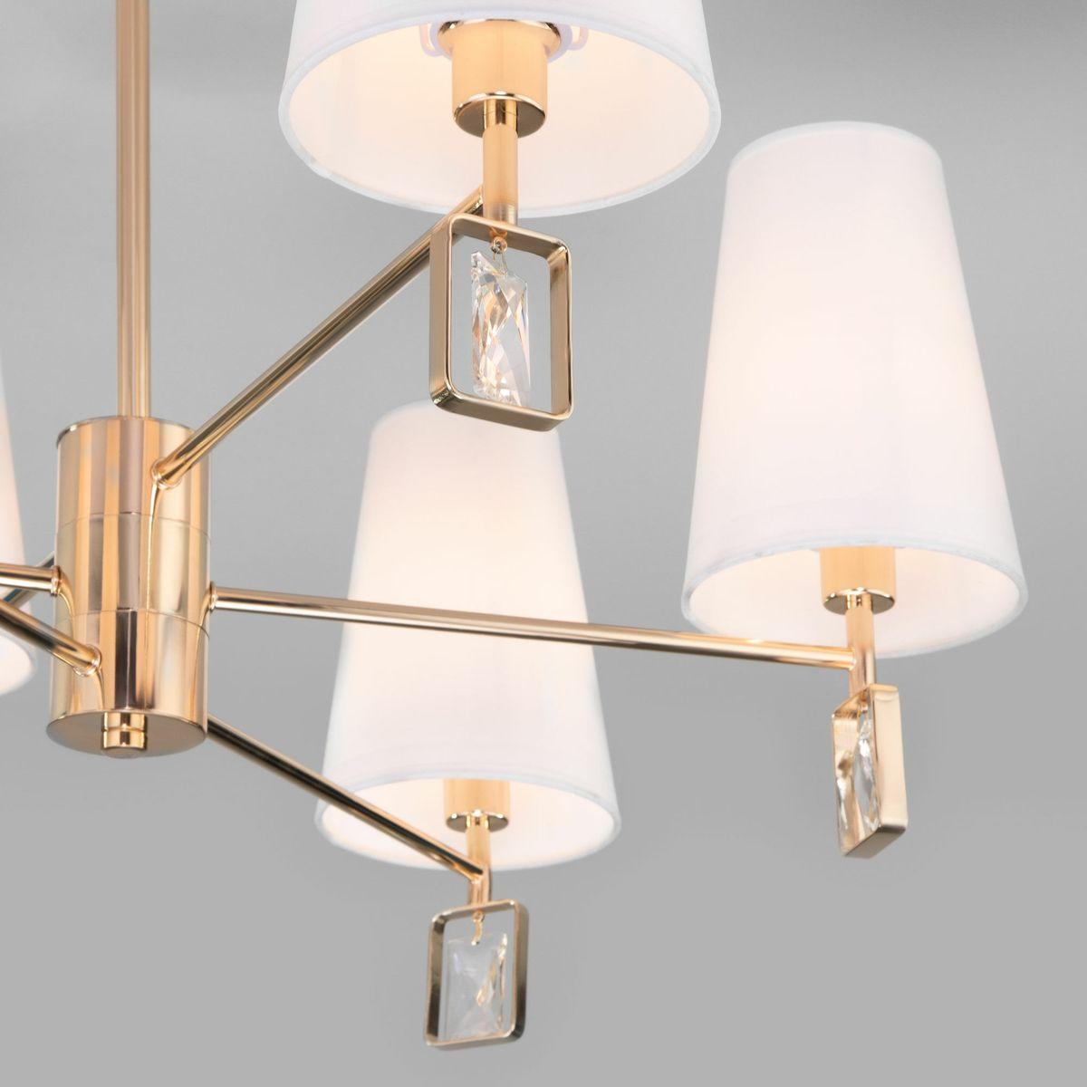 Потолочная люстра Eurosvet Milazzo 60137/6 золото от Китайского бренда из коллекции Milazzo будет удачно смотреться в спальни в стиле модерн. Светильник выполнен из ткани с плафонами в форме белого цвета.